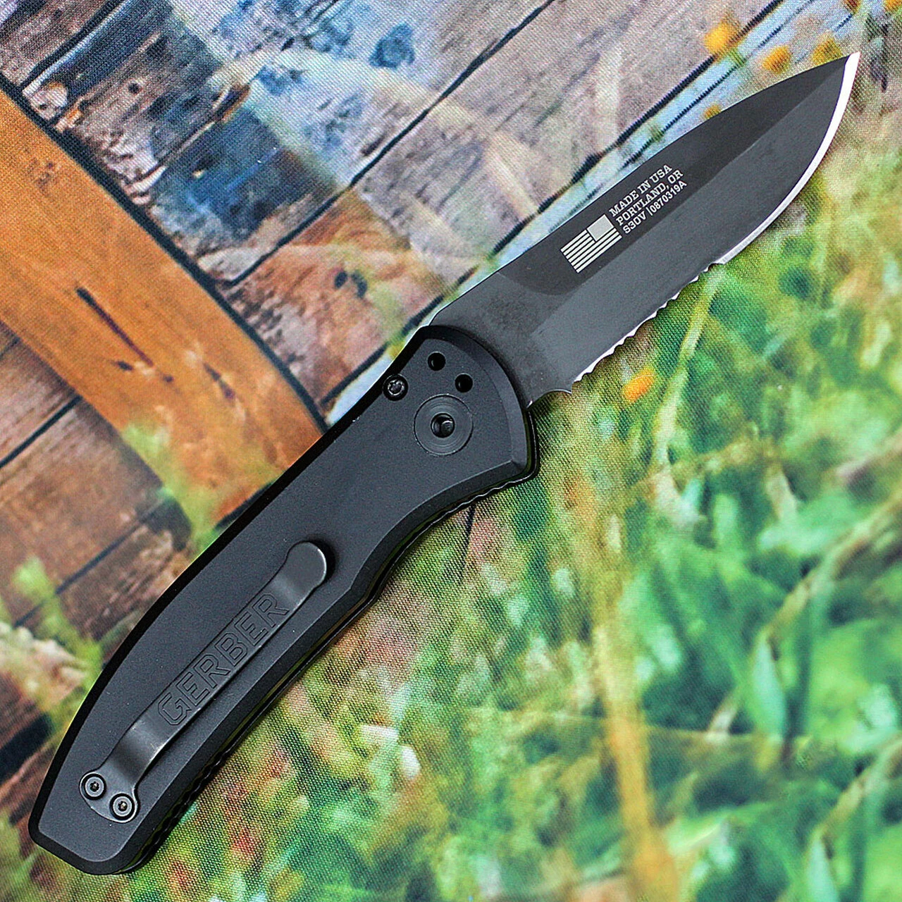 Gerber Empower Auto 30-001636, 3.25″ Black CPM-S30V Part Serrated Blade