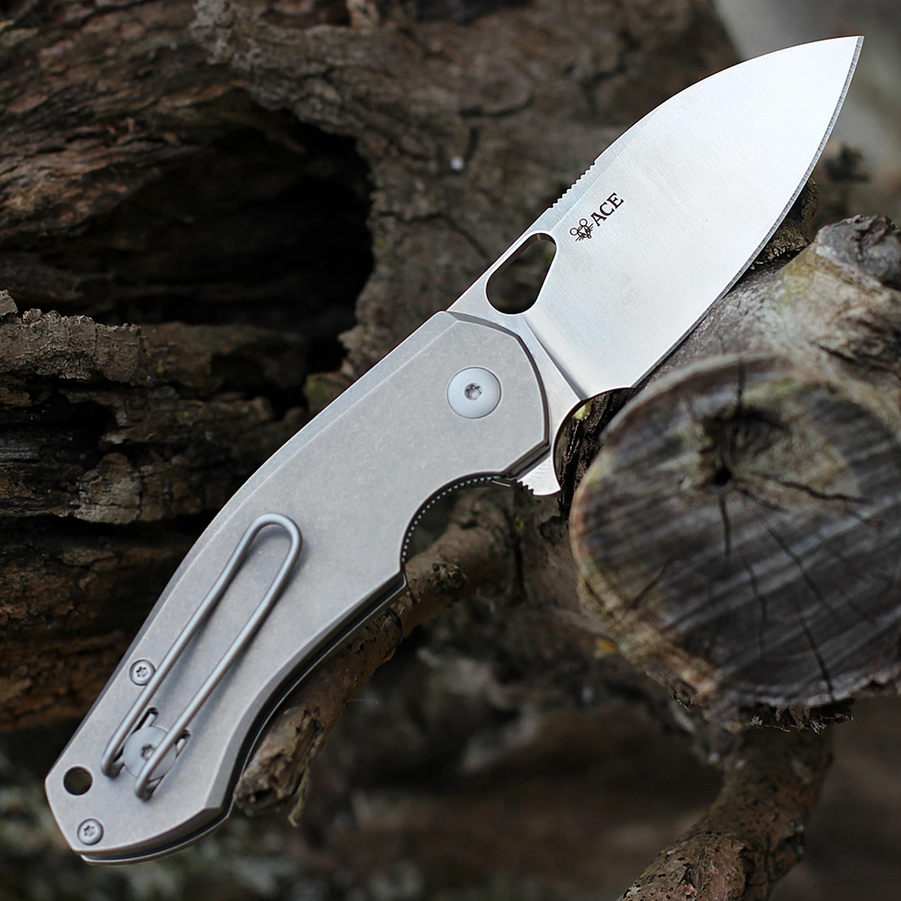 GiantMouse ACE Biblio Flipper, 2.9″ Satin M390 Drop Point Blade, Titanium Handle