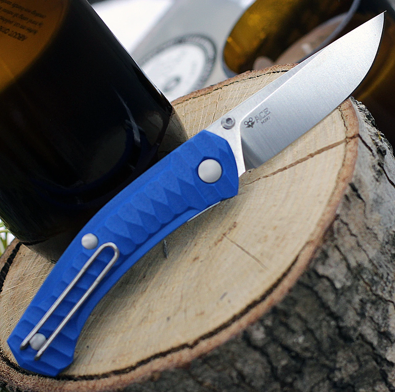 GiantMouse ACE Iona Liner Lock, 2.9″ Satin M390 Drop Point Blade, Anso Textured Blue G-10 Handle