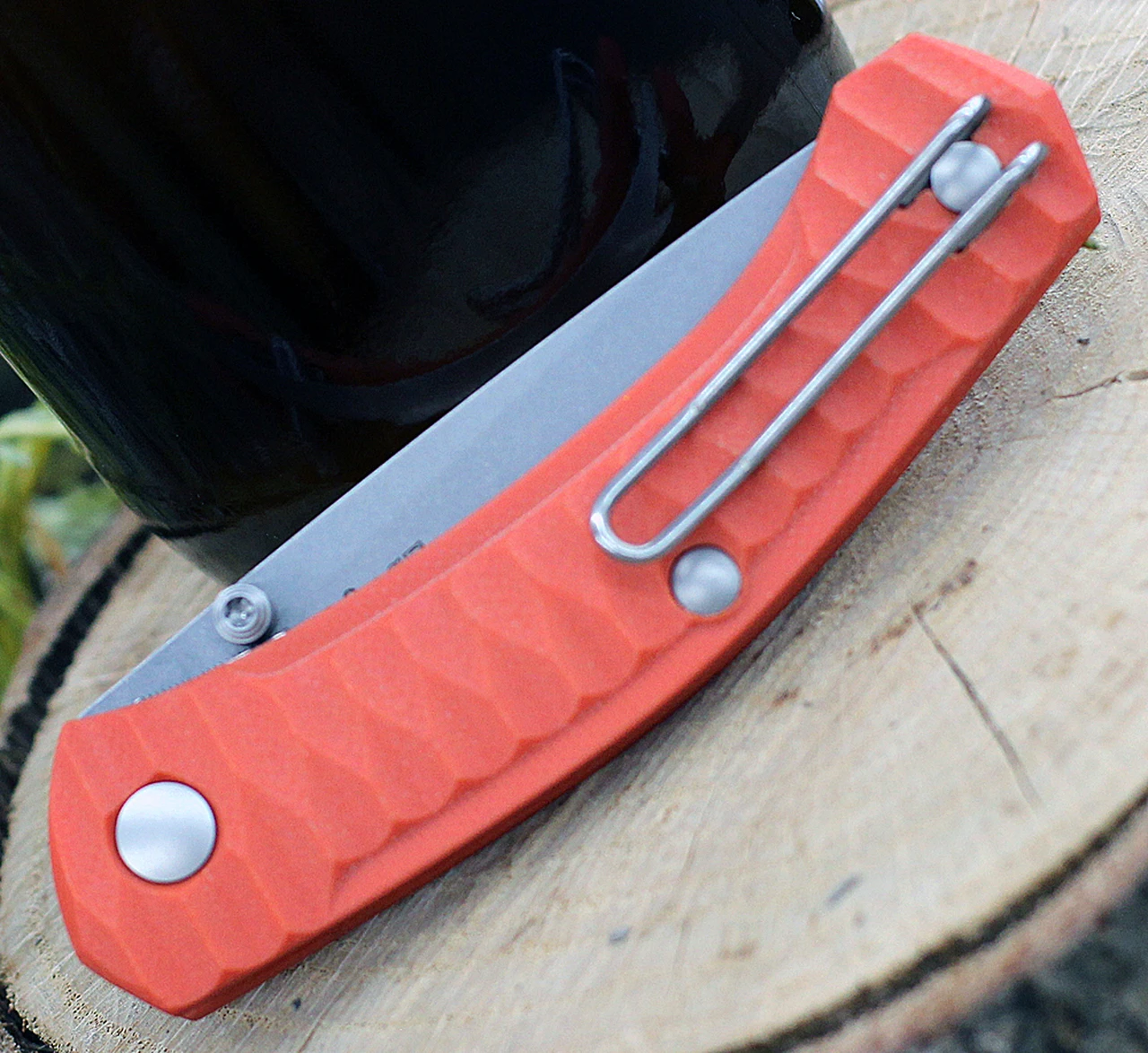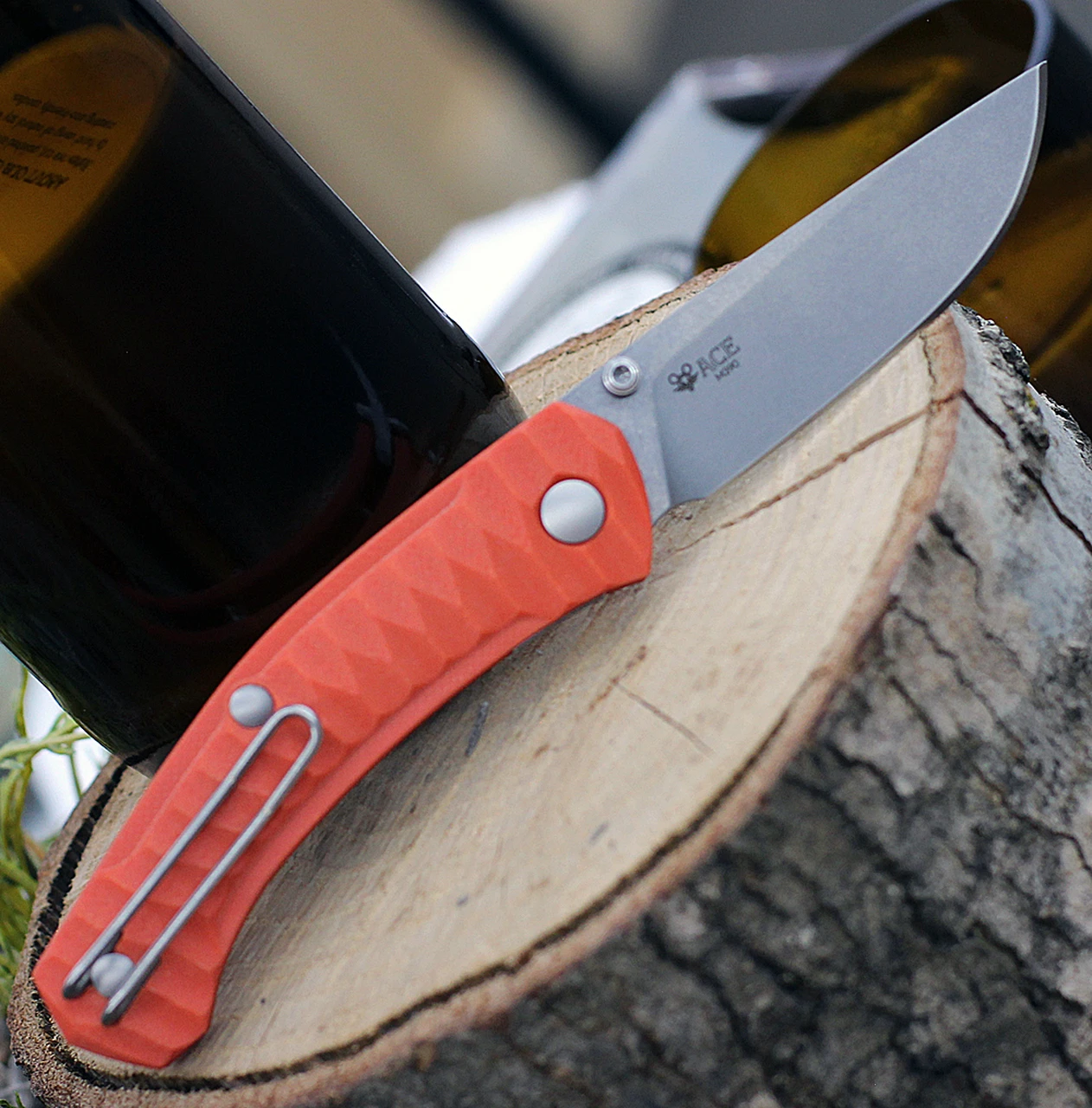 GiantMouse ACE Iona Liner Lock, 2.9″ Satin M390 Drop Point Blade, Anso Textured Orange G-10 Handle