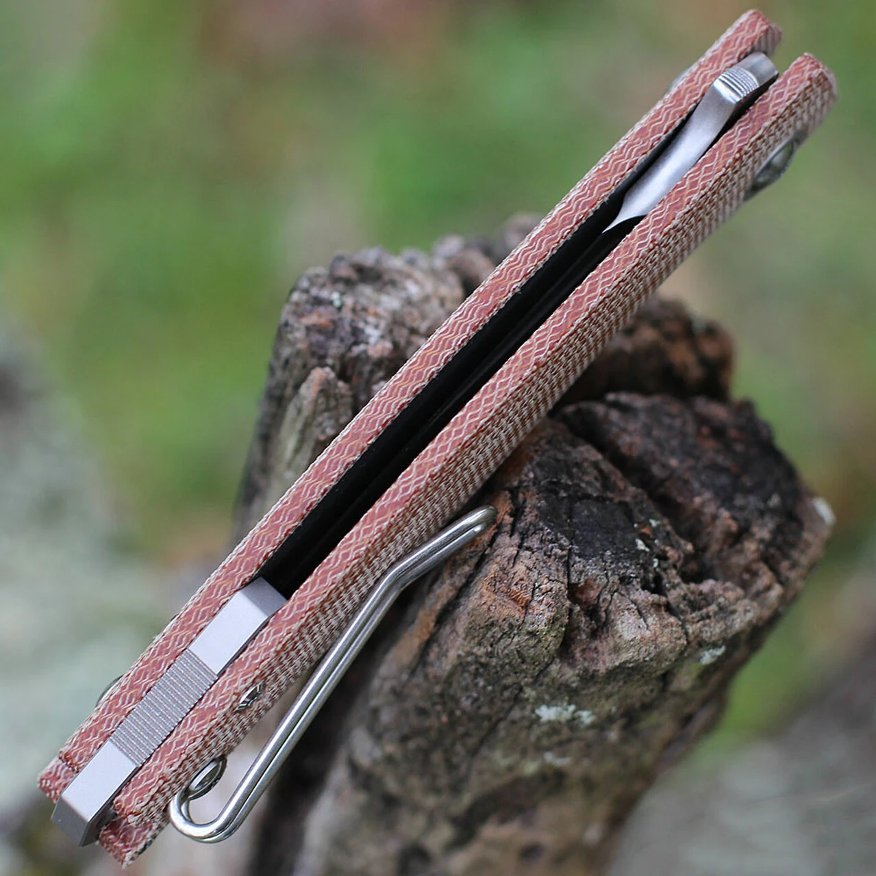 The Sonoma V2 has been in the works for quite some time. The original Sonoma frame-lock was designed as an urban utility folder in flat titanium. For V2, we designed an outdoor working liner-lock with rounded canvas Micarta scales. As with the original Sonoma, the Sonoma V2 is manufactured by Reate Knives.