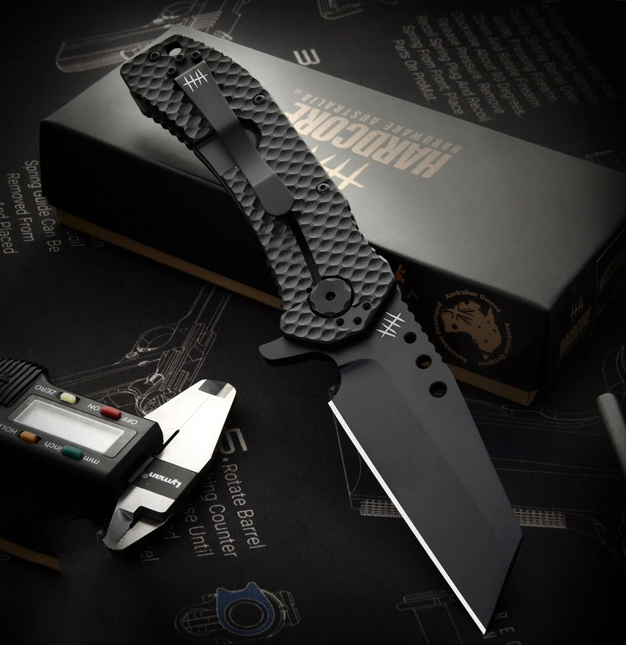 Hardcore Hardware Australia MILF Folder (MILF-04) – 3.45″ CPM S30V Black Wharncliffe Blade, Black G10 Handle