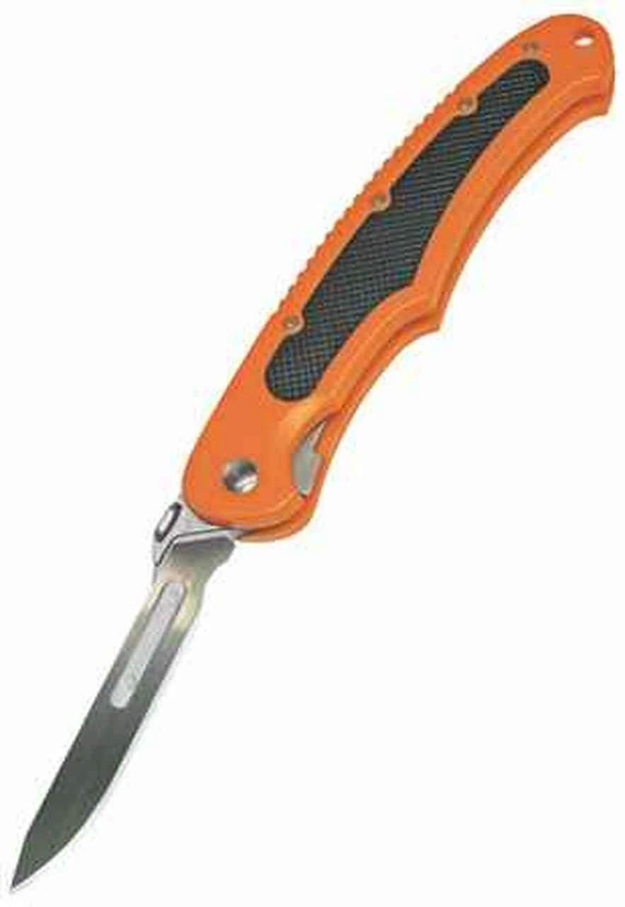 - 12 additional stainless steel #60A blades, 2-3/4 Rugged ABS blaze orange handle