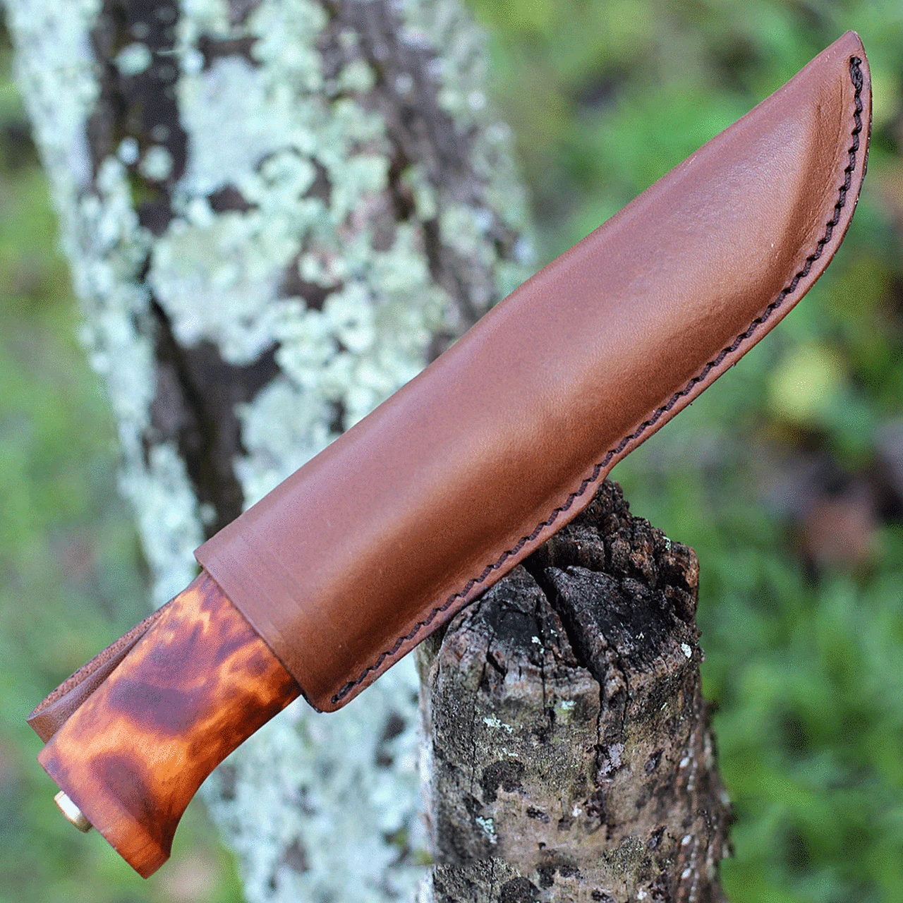 Helle Fjellkniven, Triple Laminated Stainless Steel, Curly Birch Handle