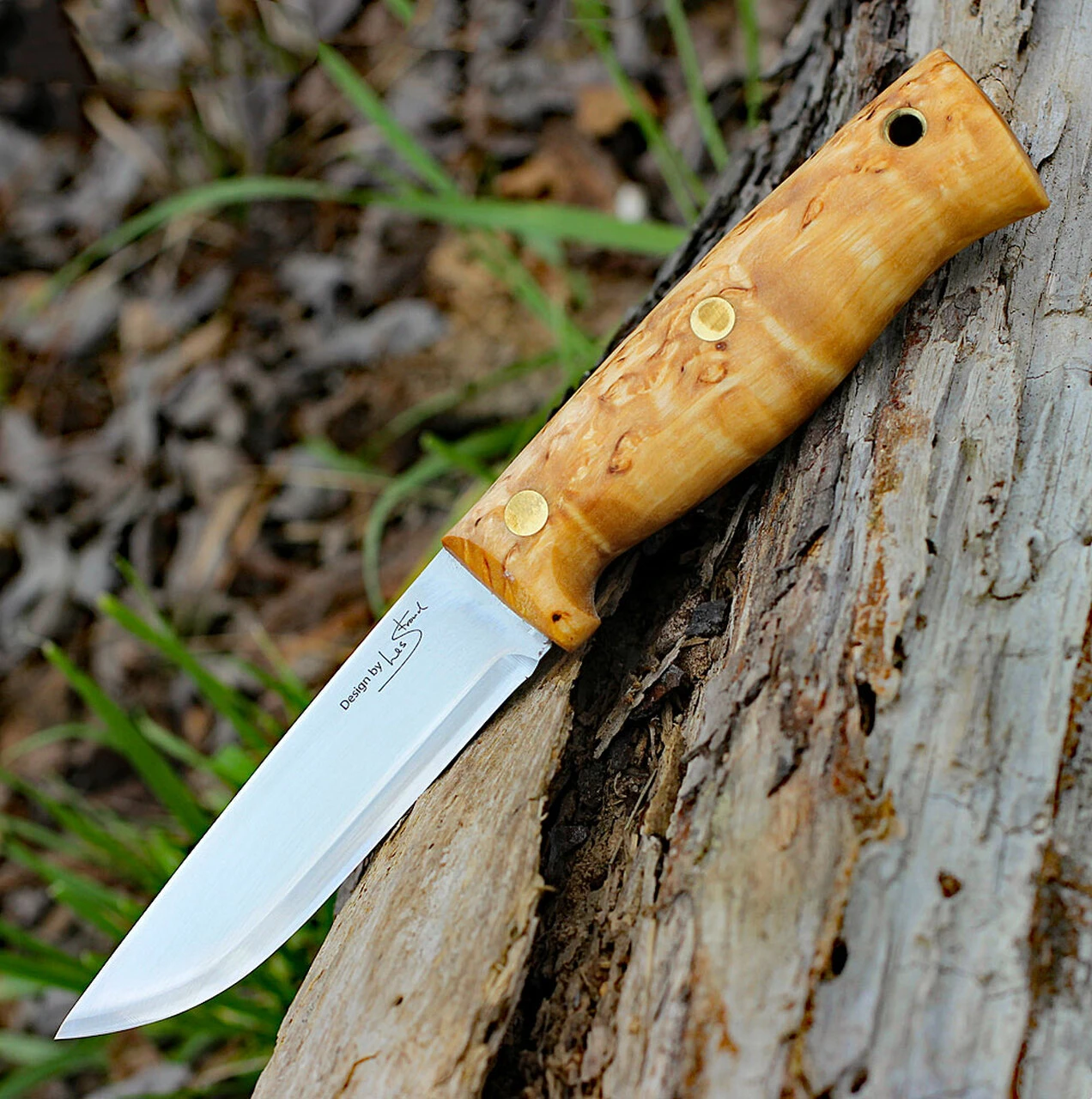 Helle Temagami, 4.33 in. Triple Laminated Stainless Steel Blade, Curly Birch Handle