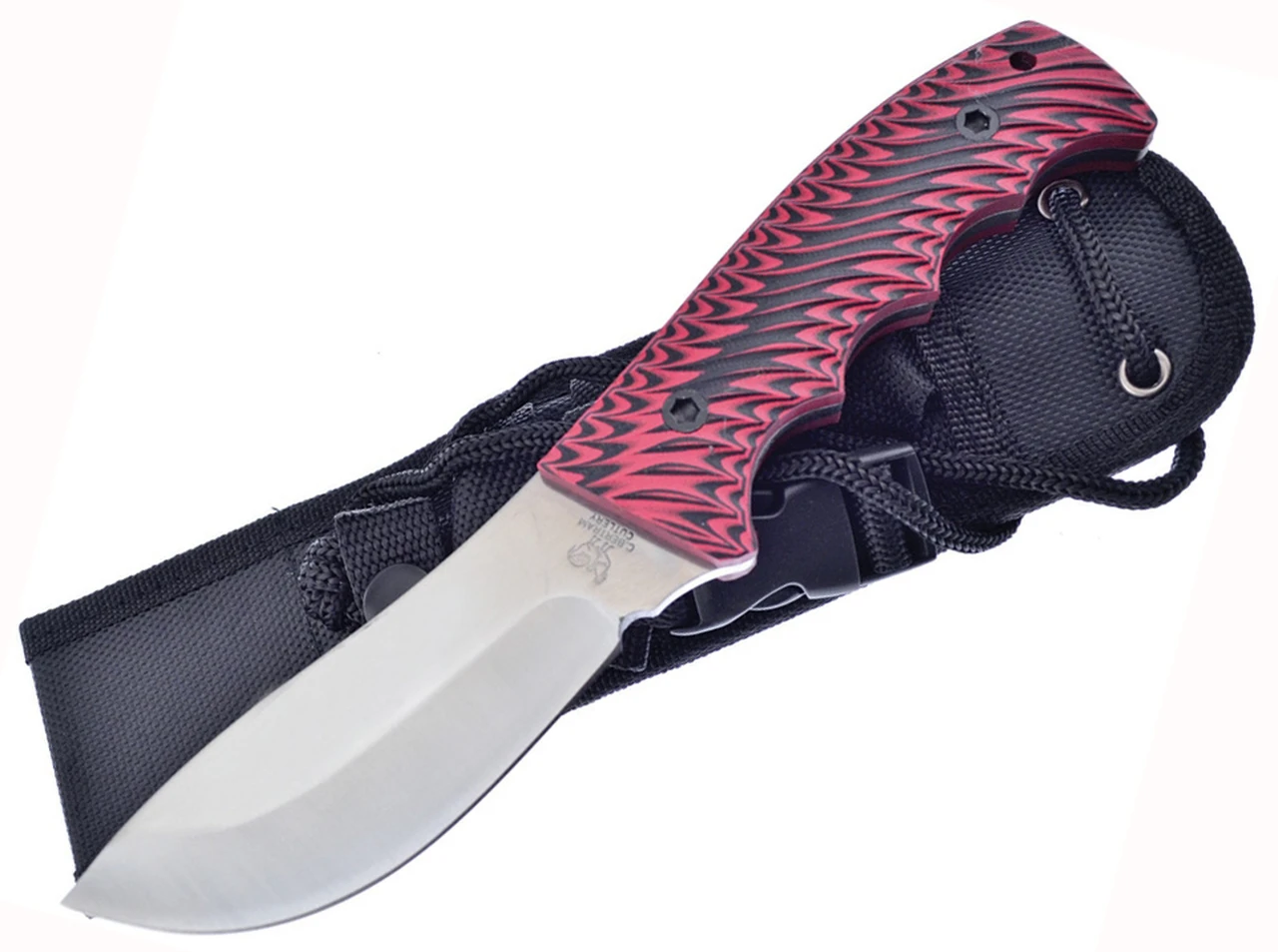 Hen & Rooster Skinner, HR-005R, 4″ Satin Stainless Steel Skinner , Black & Red G-10 Sculpted Handle w/Black Nylon Sheath