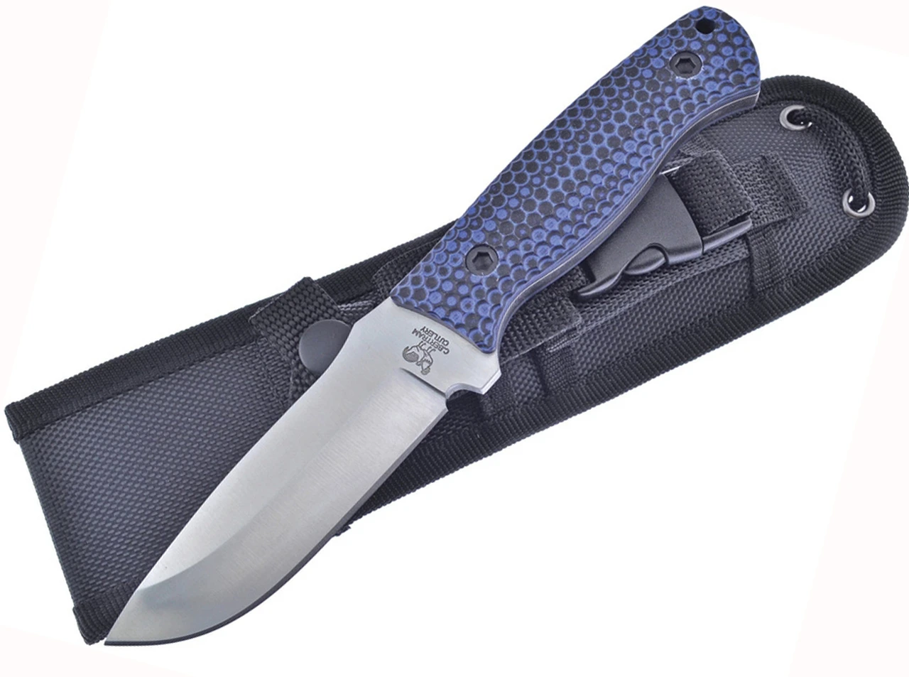 Hen & Rooster Tactical Fixed Blade, HR-006BL, 3.75″ Satin Stainless Steel, Black & Blue G-10 Handle w/Black Nylon Sheath
