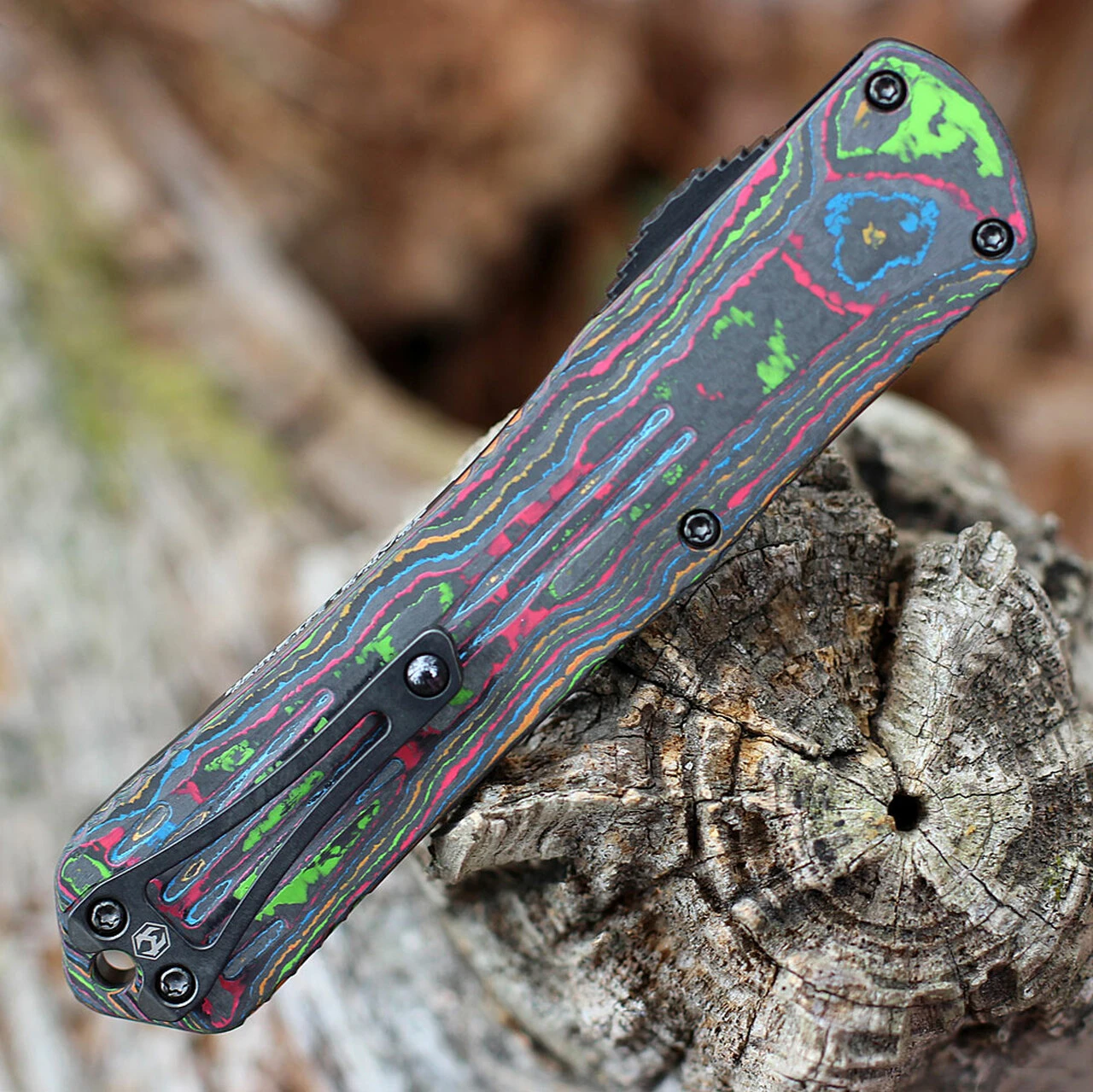 Heretic Manticore X OTF Automatic (H030B-6A-CF80’s) – 3.7″ Elmax Black DLC Bowie Blade, Awesome 80’s Carbon Fiber Backcover and Black Aluminum Front Handle