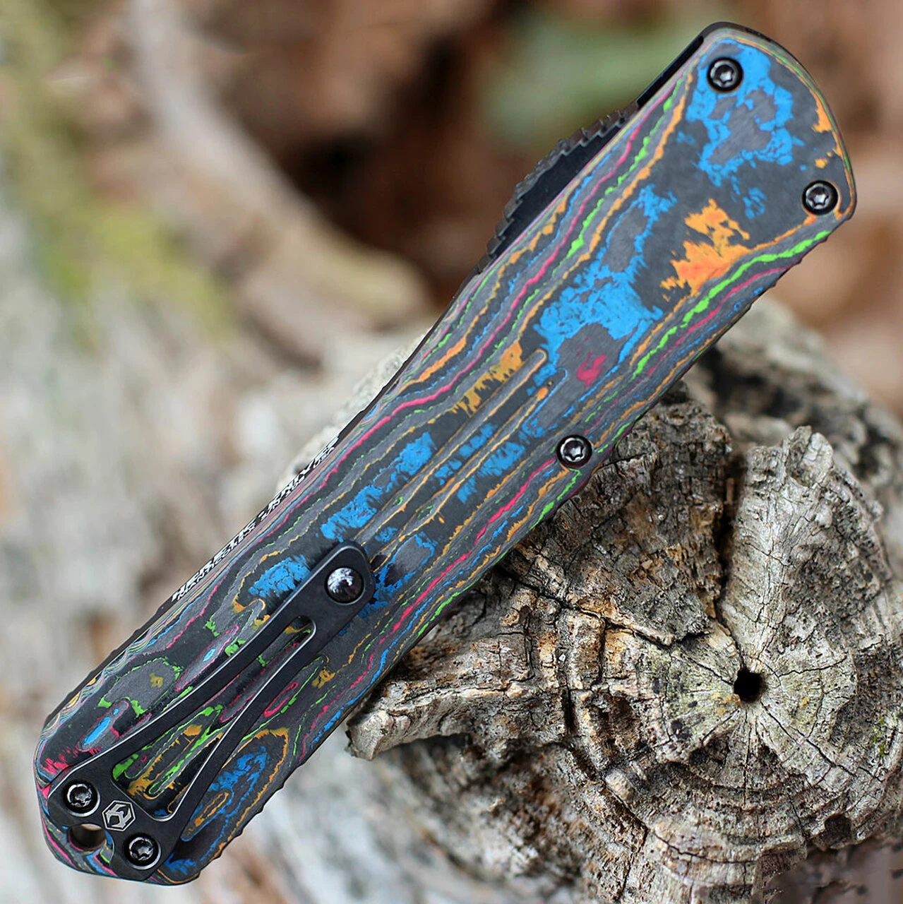 Heretic Manticore X OTF Automatic (H031-6A-CF80’s) – 3.7″ Elmax Black DLC Tanto Blade, Awesome 80’s Carbon Fiber Backcover and Black Aluminum Front Handle