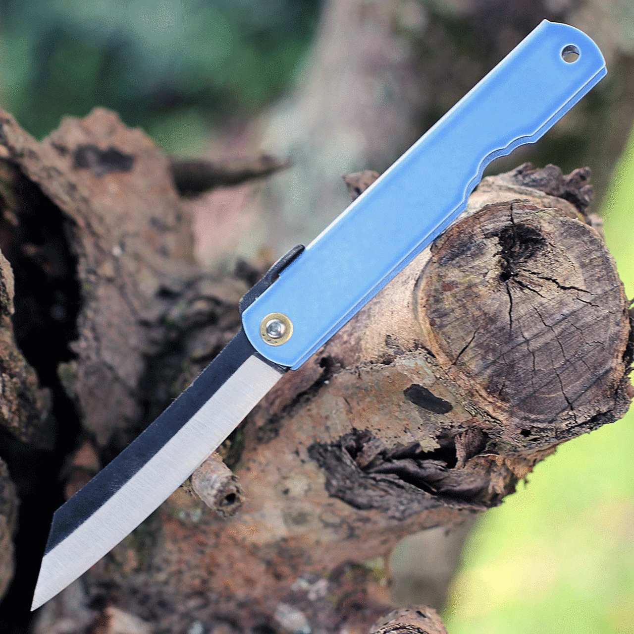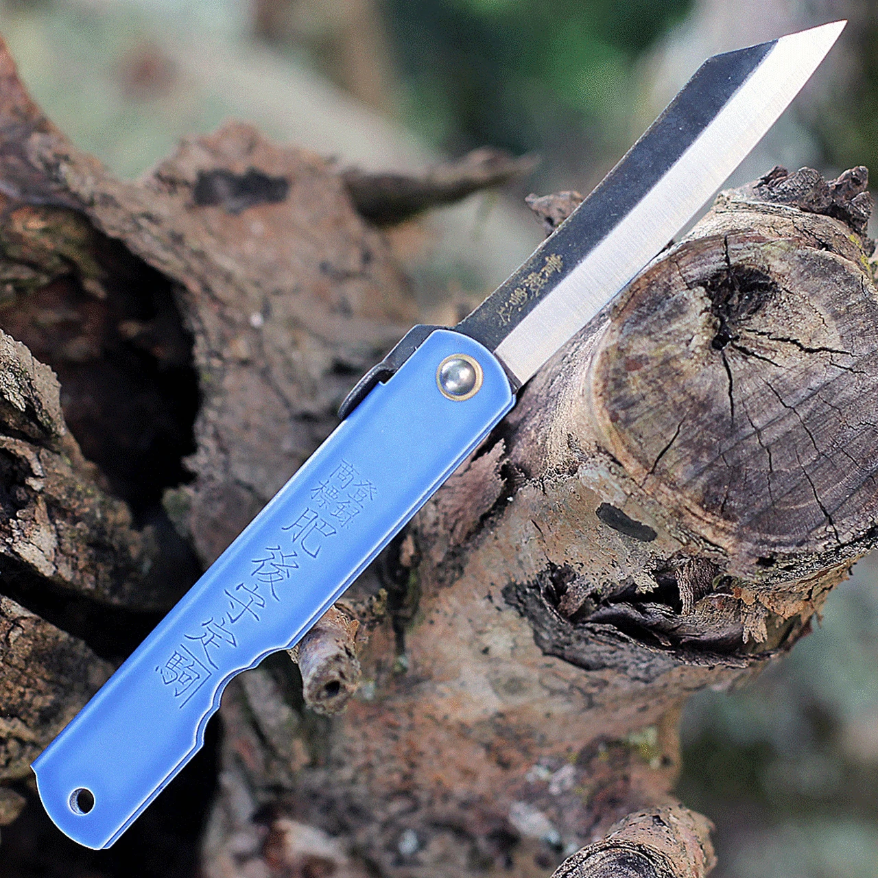 Higonokami Aogami 3.00″ Blue Paper Enamel Blade Blue Iron Handle – HIGOC7B