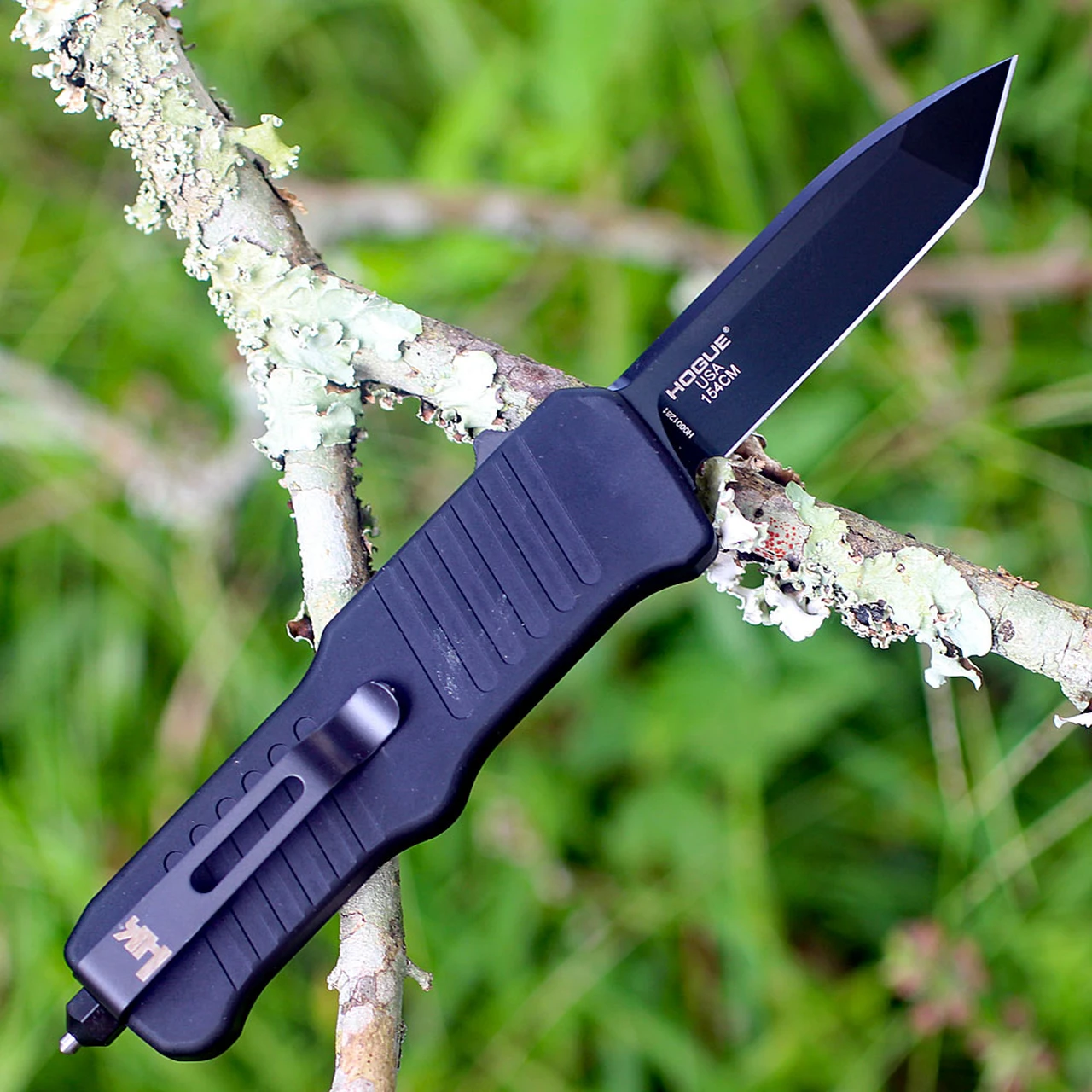 HK Mini Incursion OTF Automatic, 2.95″ Black PVD Tanto Blade, Matte Black Aluminum Frame