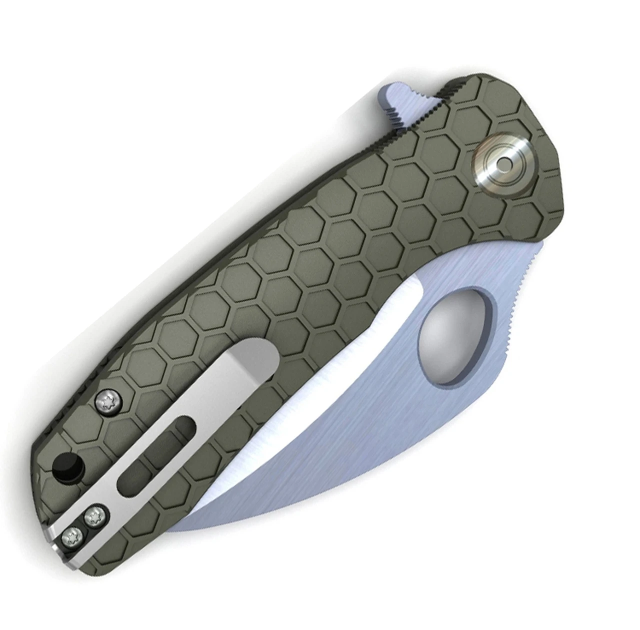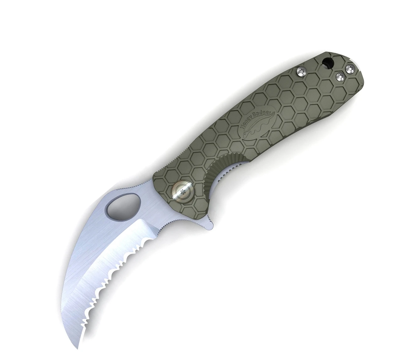 Honey Badger Knives Medium Claw Flipper HB1133, 3.0″ 8Cr13Mov Claw Serrated Blade, Green FRN Handle