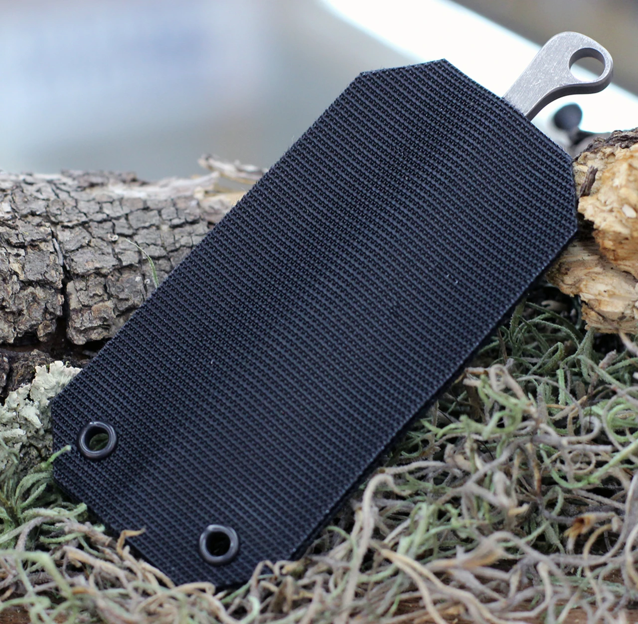 The Dashi has been a staple of Hoback Knives for many years, made from time to time with many different kinds of blade materials from titanium to carbon fiber. The newest edition is made from CPM-20CV and sports the new “Squeeze” Velcro sheath.