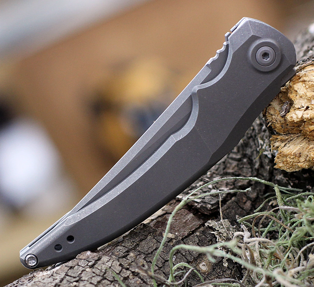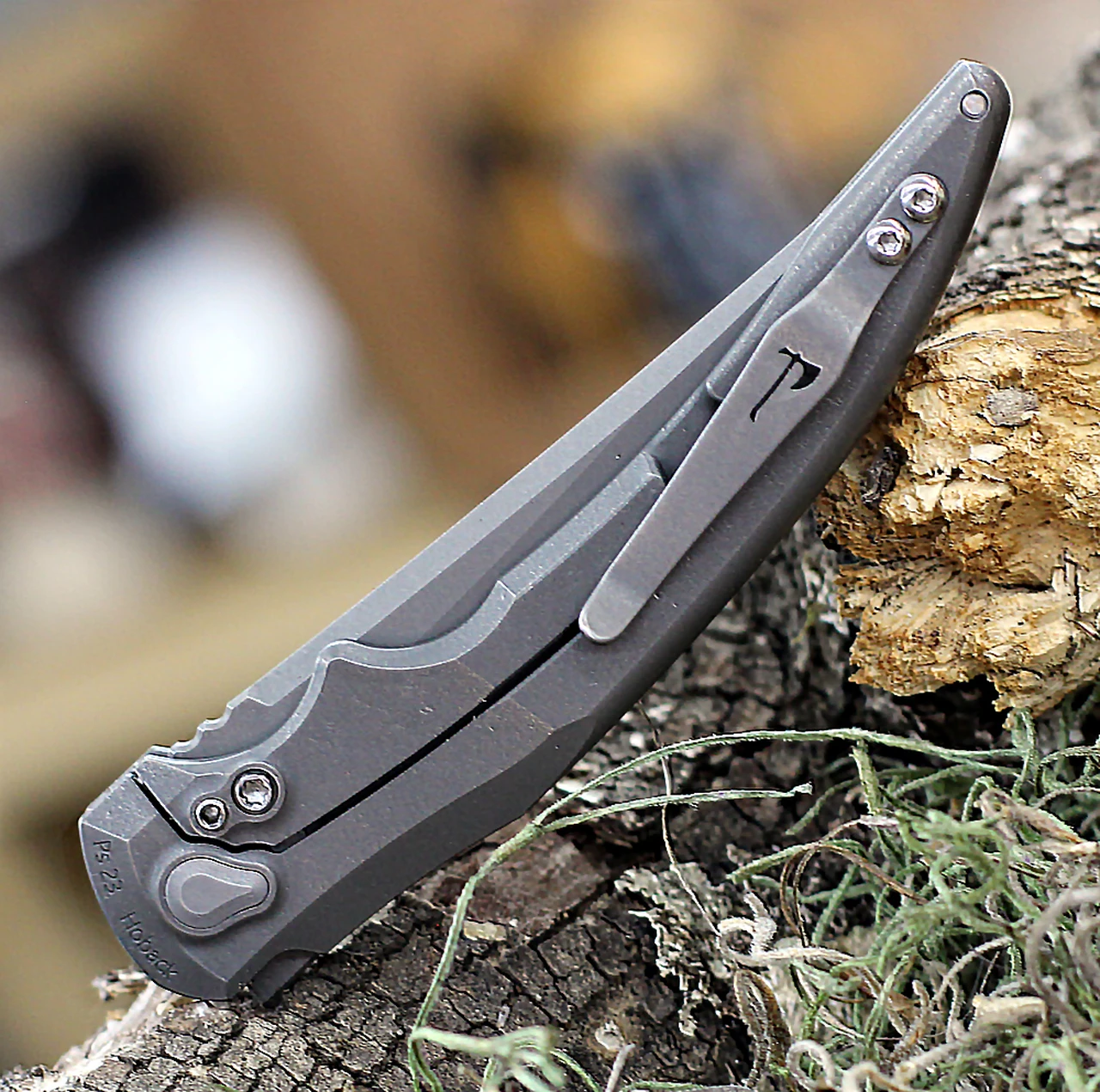 Jake Hoback Sliver Framelock HOB022, 3.25″ CPM-20CV Gray Stonewash Plain Blade, Gray Anodized Titanium Handle