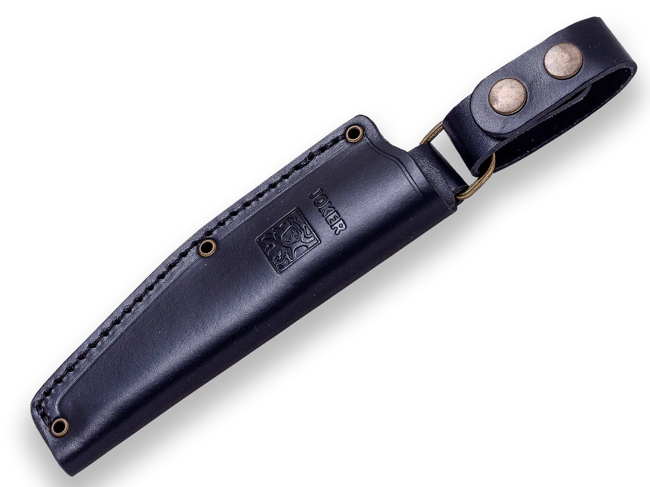 The Joker CV120 Bushcrafter Bushcraft is full tang blade made of Böhler N695 stainless steel with a blade length of 4.13in, a thickness of 0.15in, the length of the handle is 4.62in.