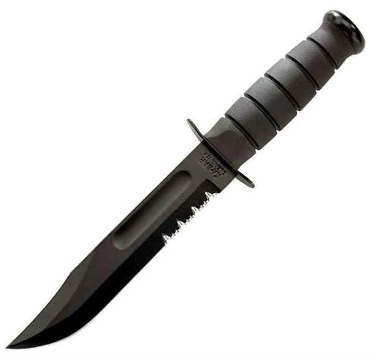 Ka Bar Full Size Fighting/Utility Knife, Serrated, with Leather Sheath, Model 1212