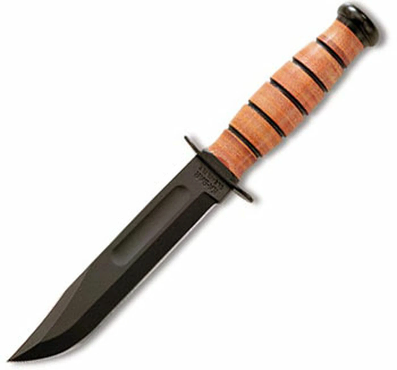 Ka-Bar first found out during WWII just how important their knives are to U.S. troops. The company is still reminded daily and is honored to be offering the best-all-around fixed blade knife to those men and women who serve our company. The company is also please to suit the needs of outdoor enthusiasts and collectors. The Ka-Bar all leather handle Fighting and Utility knives are made in Olean, NY and are proudly stamp KA-Bar. Quality materials and classic construction, features stacked leather handles, double guards, pinned-on butt caps. The traditional KA-BAR with USA tang stamp
