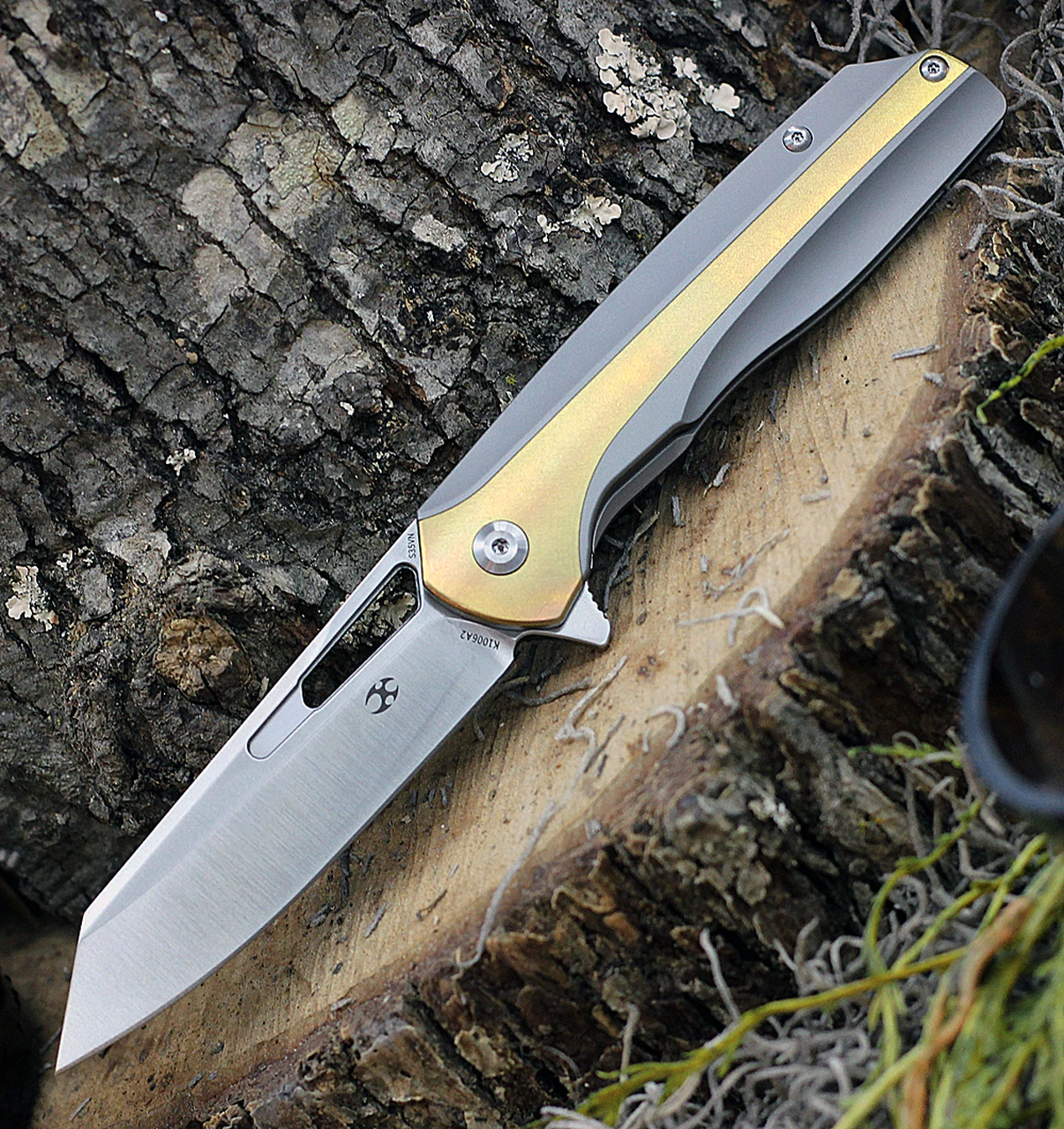 Kansept Knives K1006A2, Shard Flipper, 3.5″ CPM-S35VN Wharncliffe Blade, Gray & Bronze Titanium Handle