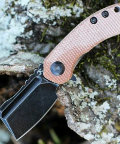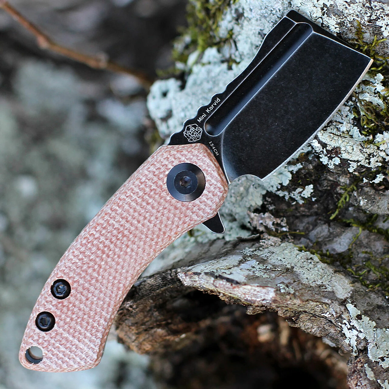 Kansept Mini Korvid Folder (T3030A5) – 1.45″ 154CM Black Stonewashed Cleaver Blade, Brown Micarta Handle