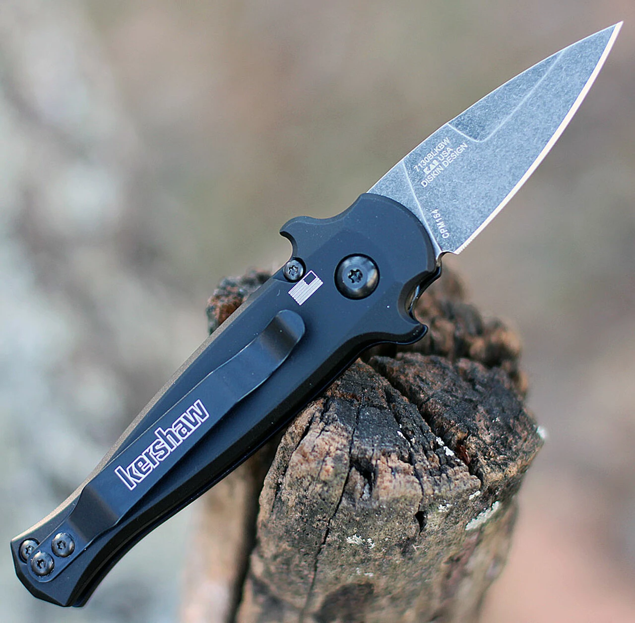 Designed by Matt Diskin, the Launch 12 is the baby brother of Kershaw’s popular Launch 8. Inspired by the look of classic Italian stilettos, the Launch 12 offers stiletto style for a new generation. More compact than the original Launch 8, the Launch 12 weighs just 1.9 ounces, making it exceptionally easy to carry. The slim blade is sharpened on one side and has a deep top grind to lighten weight and add stiletto style. Integrated fingerguards on handle top and bottom keep fingers away from danger.