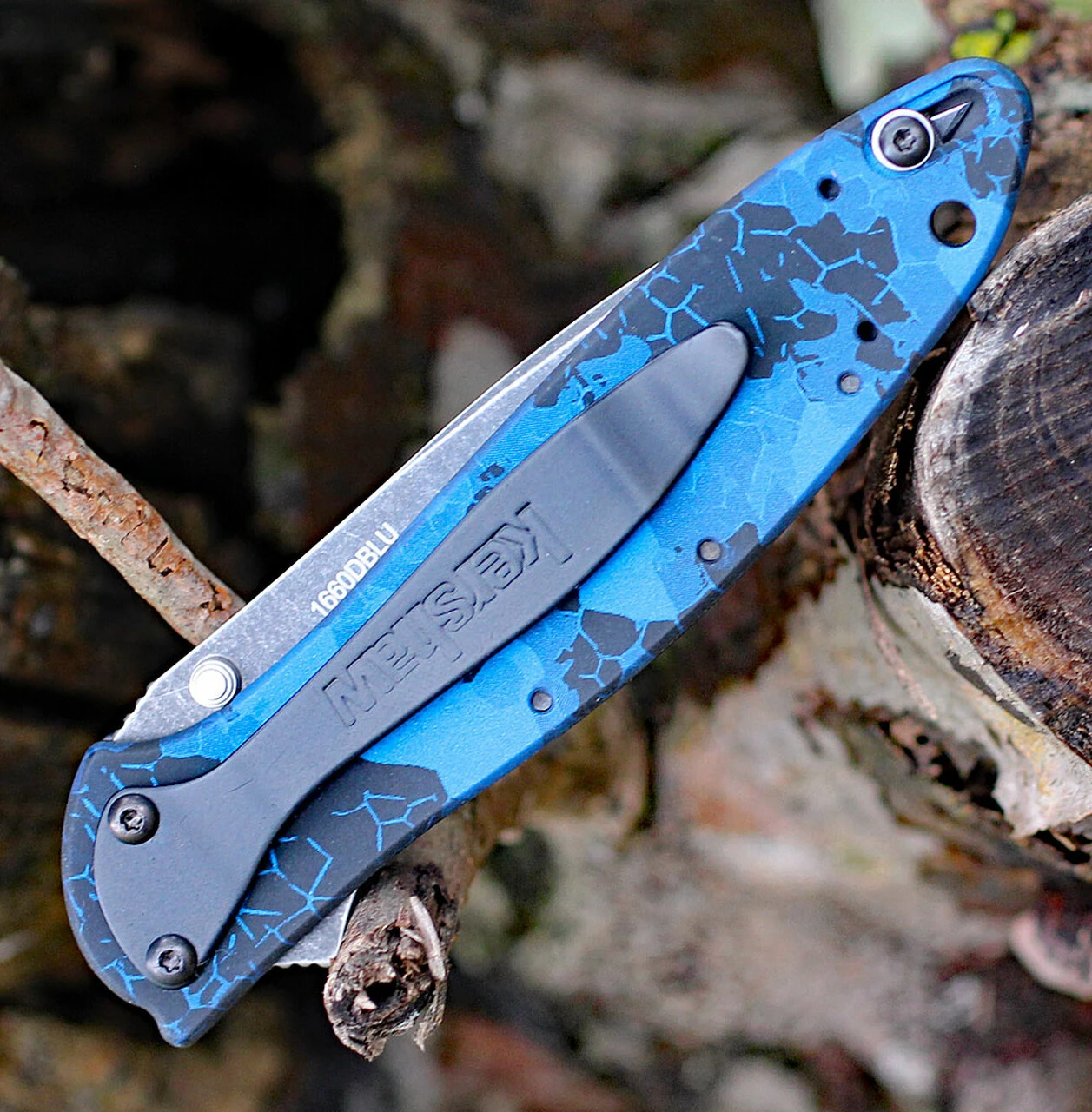 The famous Kershaw Leek just got better—with BlackWash finish and the Digital Blue Handle that gives this Leek modern look with an already-broken-in look of the blade.