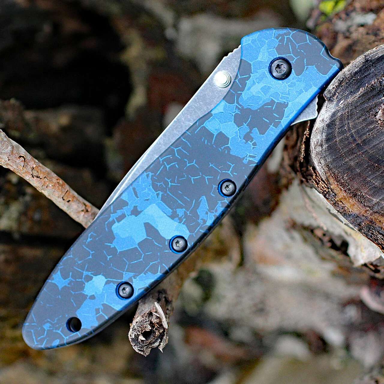 Kershaw Leek Digital Blue 1660DBLU, 3″ Sandvik Blackwash Blade, Digital Blue Handle