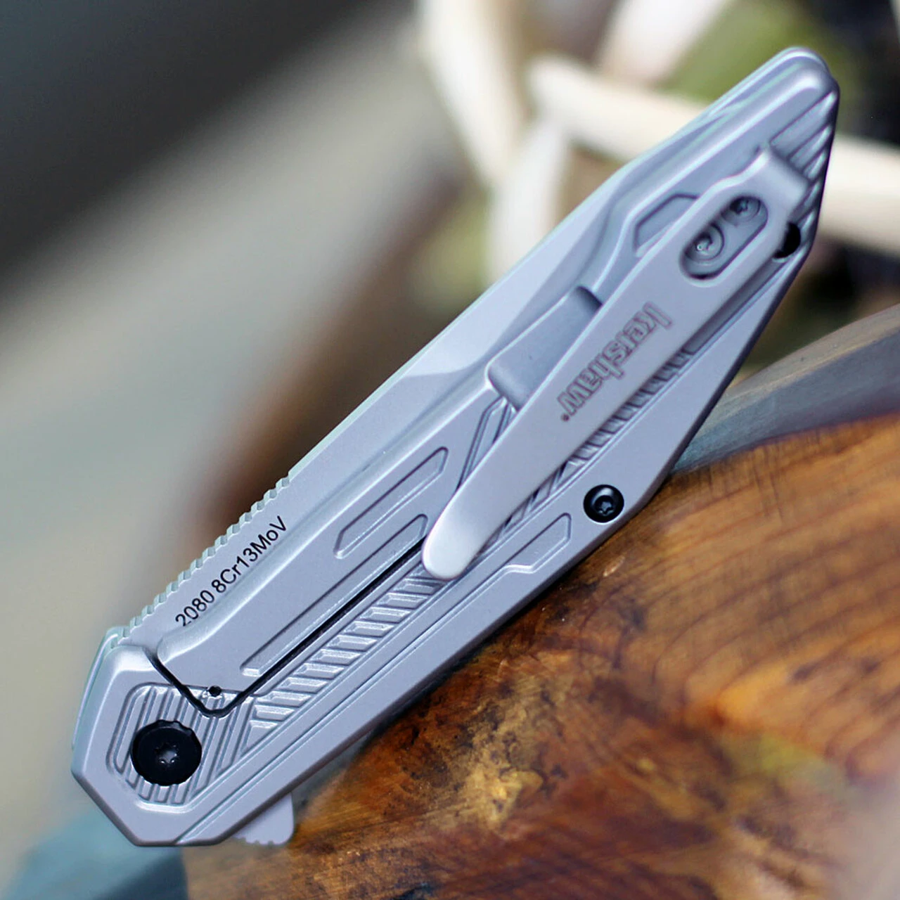 - 8Cr13MoV blade takes a sharp edge and is easy to re-sharpen when needed; bead-blasted finish provides a subtle, matte look