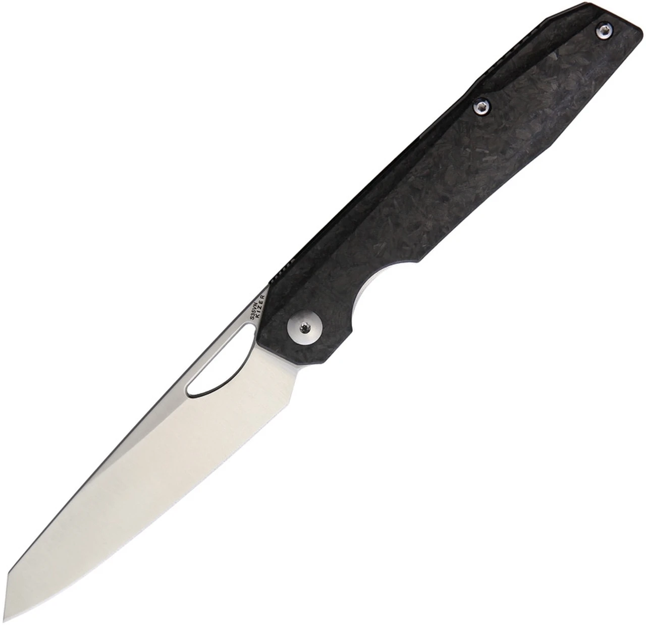 Kizer Cutlery Genie Frame Lock – 3.4″ CPM-S35VN Stonewashed Reverse Tanto Plain Blade, Carbon Fiber Handle – Ki4545A2