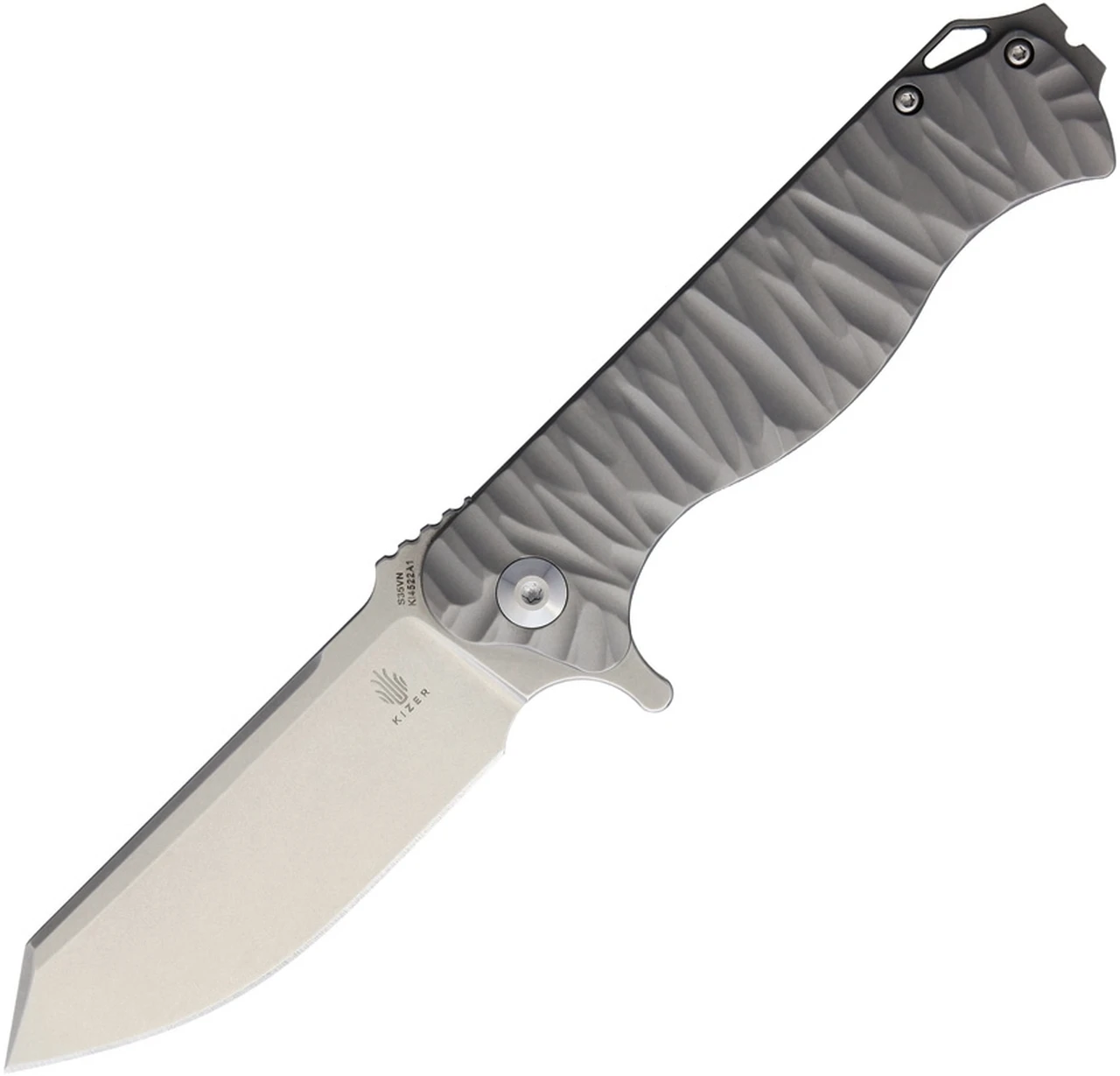 Kizer Cutlery KI4522 Vindicator Framelock Folder, 3.5″ CPM-S35VN Stonewash Clip Point Plan Blade, Gray Textured Titanium Handle