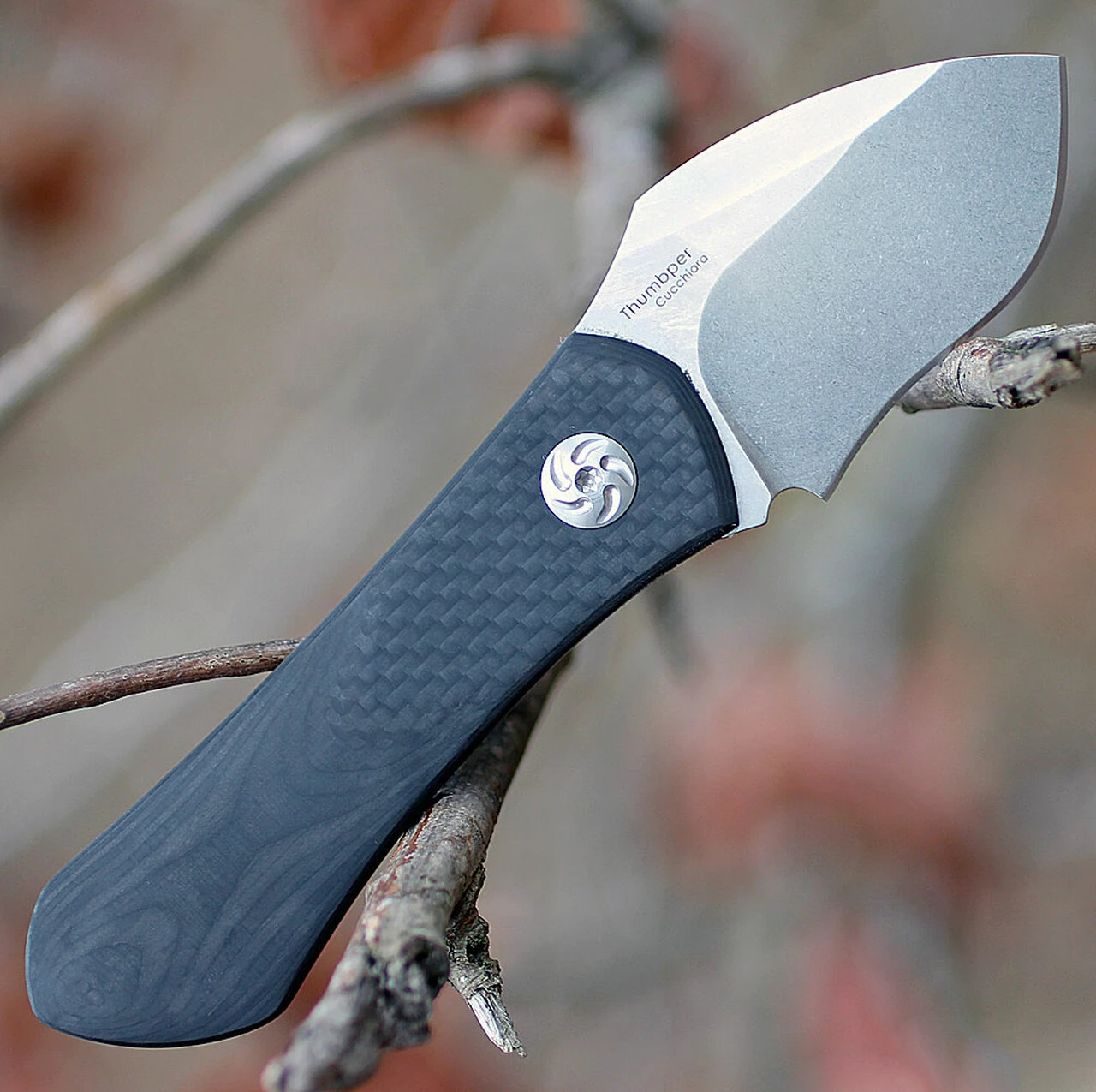 Kizer 1014 Thumbper Long, 2″ CPM-S35VN Plain Blade, Carbon Fiber Handle