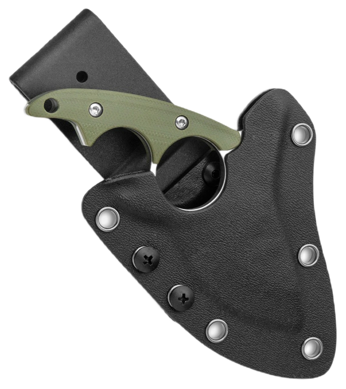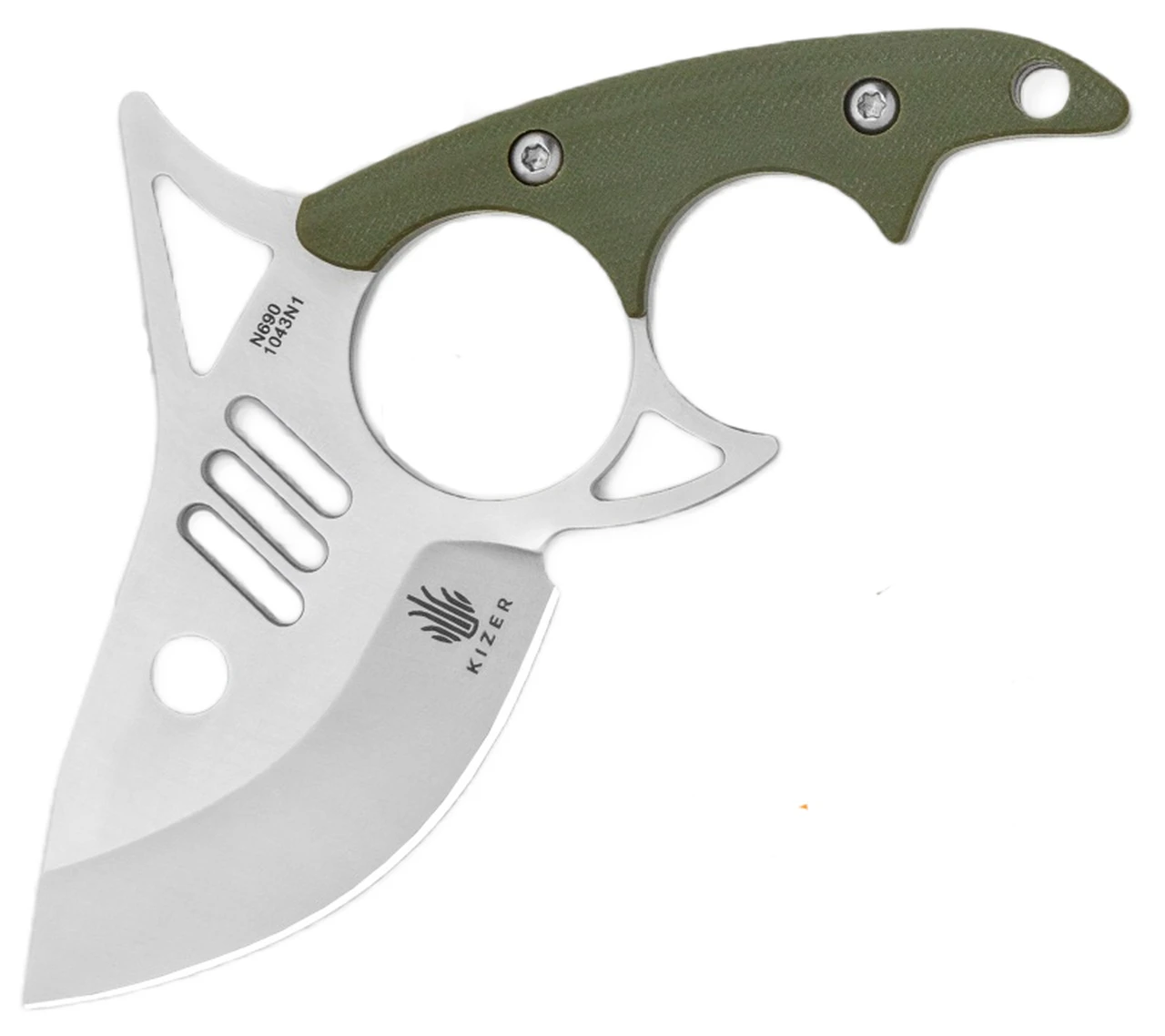 Kizer Cutlery The Shark Tooth Fixed Blade (Ki1043N1) – 2.5″ N690 Satin Drop Point Blade, OD Green G-10 Handle, Black Kydex Sheath