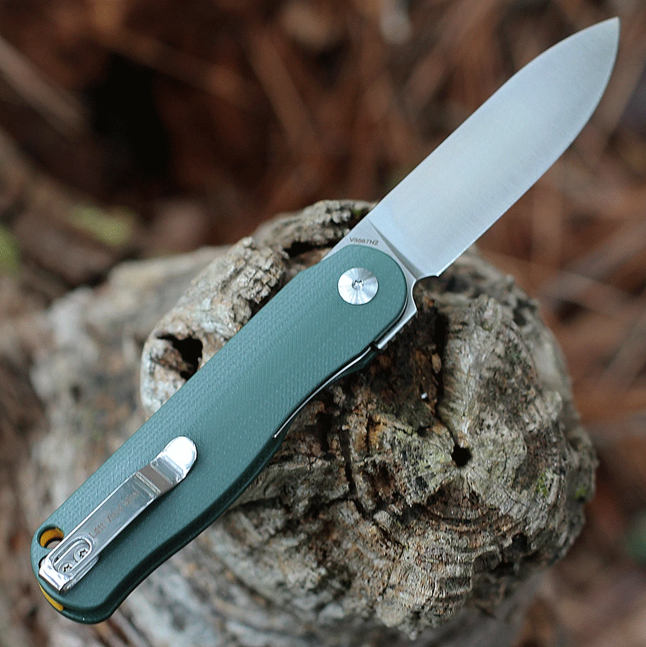 Kizer Cutlery Latt Vind Mini V3567N2, 3″ Bohler N690 Satin Spear Point Blade, Green and Brown G-10 Handle
