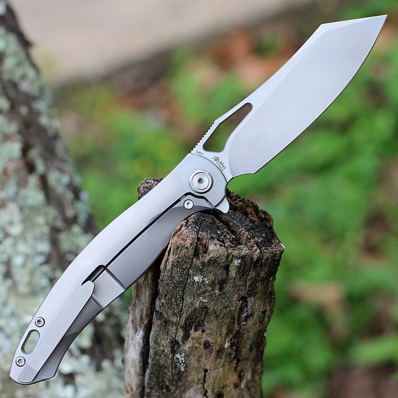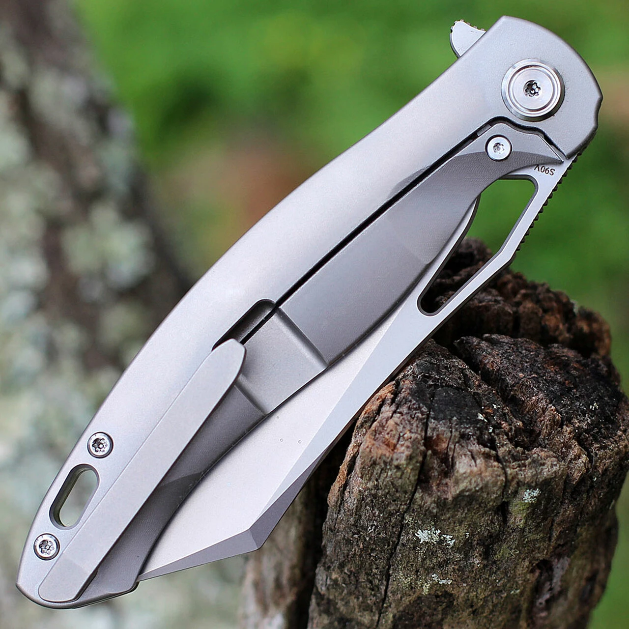 Kubey Knife Drake Frame Lock (KU246A) – 3.88” Sand blasted CPM-S90V Blade, Gray Titanium Handle