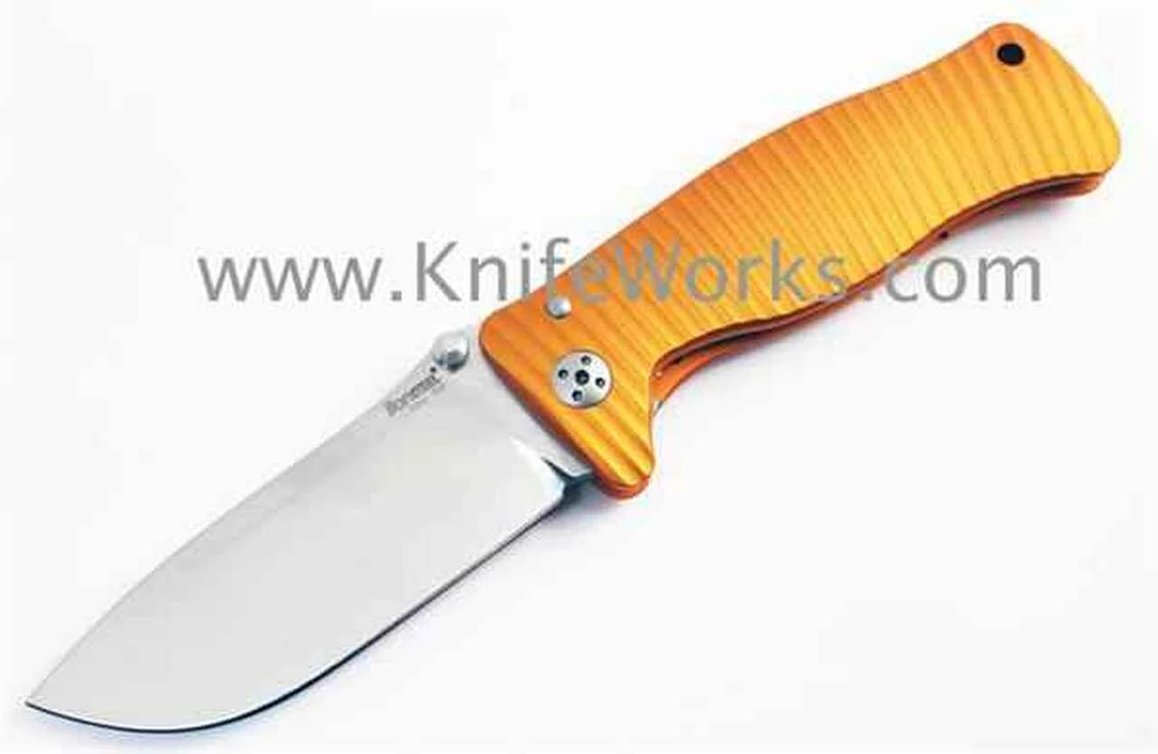 Lion Steel Molletta. 4 5/8″ closed heavy design framelock. 3 1/2″ matte finish D2 tool steel blade. Features unique RotoBlock system, which allows turning a pivoting button or ‘lockbar stabilizer’, basically converting the knife to a fixed knife. Grooved orange aluminum handles. Lanyard hole. Matte finish stainless pocket clip.