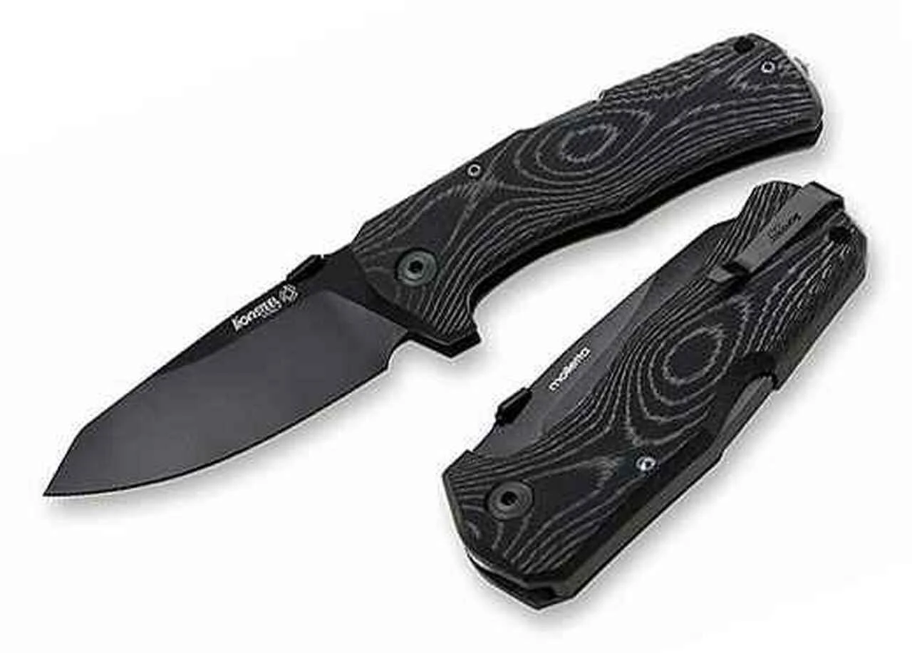 Following the previous SOLID SR1 and TiSpine models, both frame lock folding knives, we decided to launch a SOLID knife with lockback. The task was a challenge, considering our decision to use Micarta and carbon fibre for the monolithic onepiece construction of the handle using four-centreline machining stations. The blade is available either satin finished or black. The clip can be fitted on either side of the handle, making this knife totally ambidextrous. The double spring lock back mechanism ensures greater flexibility in the mechanism and improved durability of the locking system.