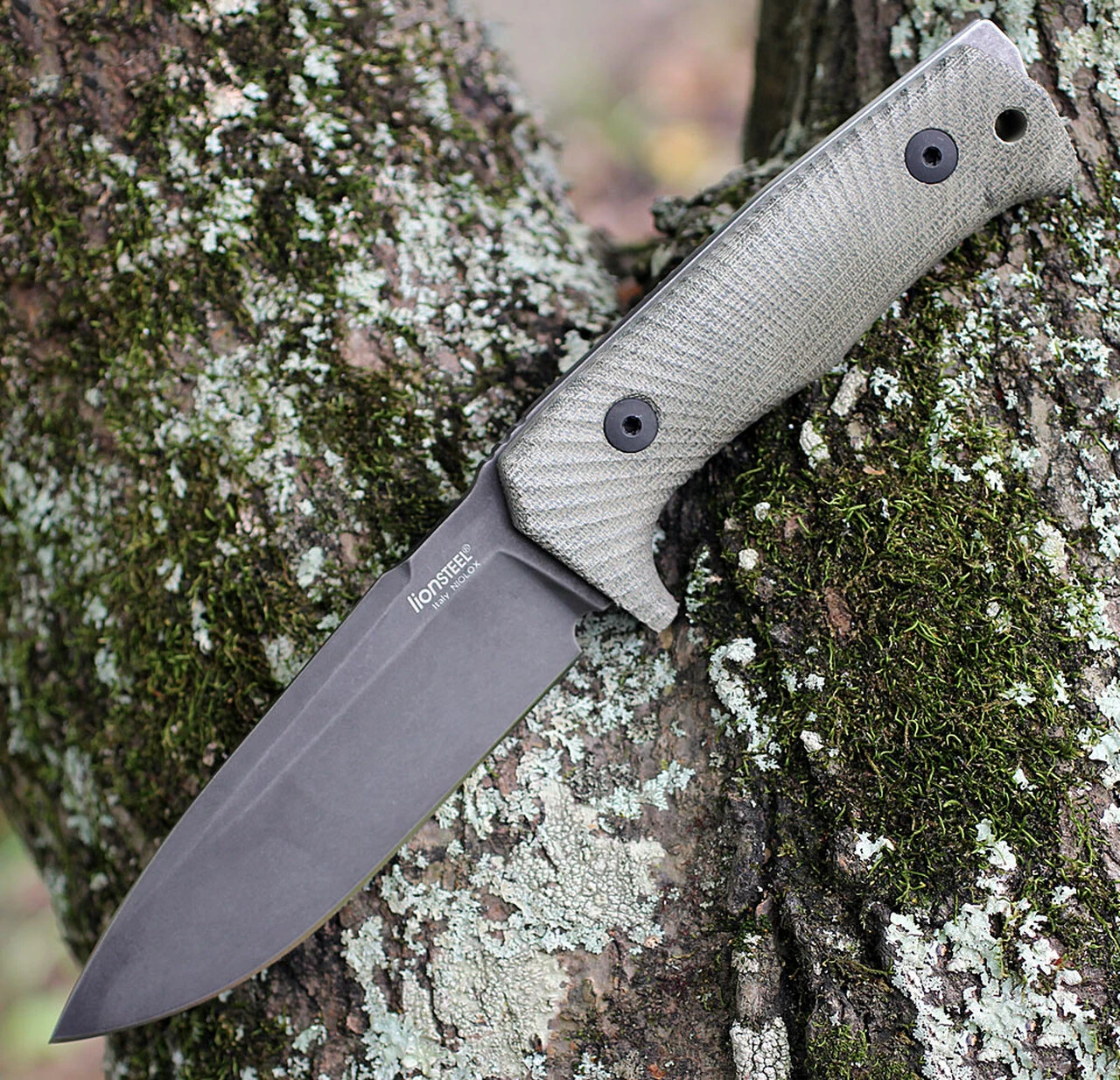 The T5 is equipped with a Niolox stainless steel blade that offers exceptional resistance to corrosion and optimum toughness. The blade is available either satin finished or black coated with PDV and stone washed treatment. The SOLID® handle is obtained from a 4D machined unique block of Micarta to allow a strong and firm grip.