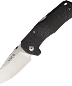 LionSteel TM1 Lockback Knife (TM1 CS) – 3.50″ Sleipner Satin Plain Blade, Carbon Fiber Handle with Black Leather Case