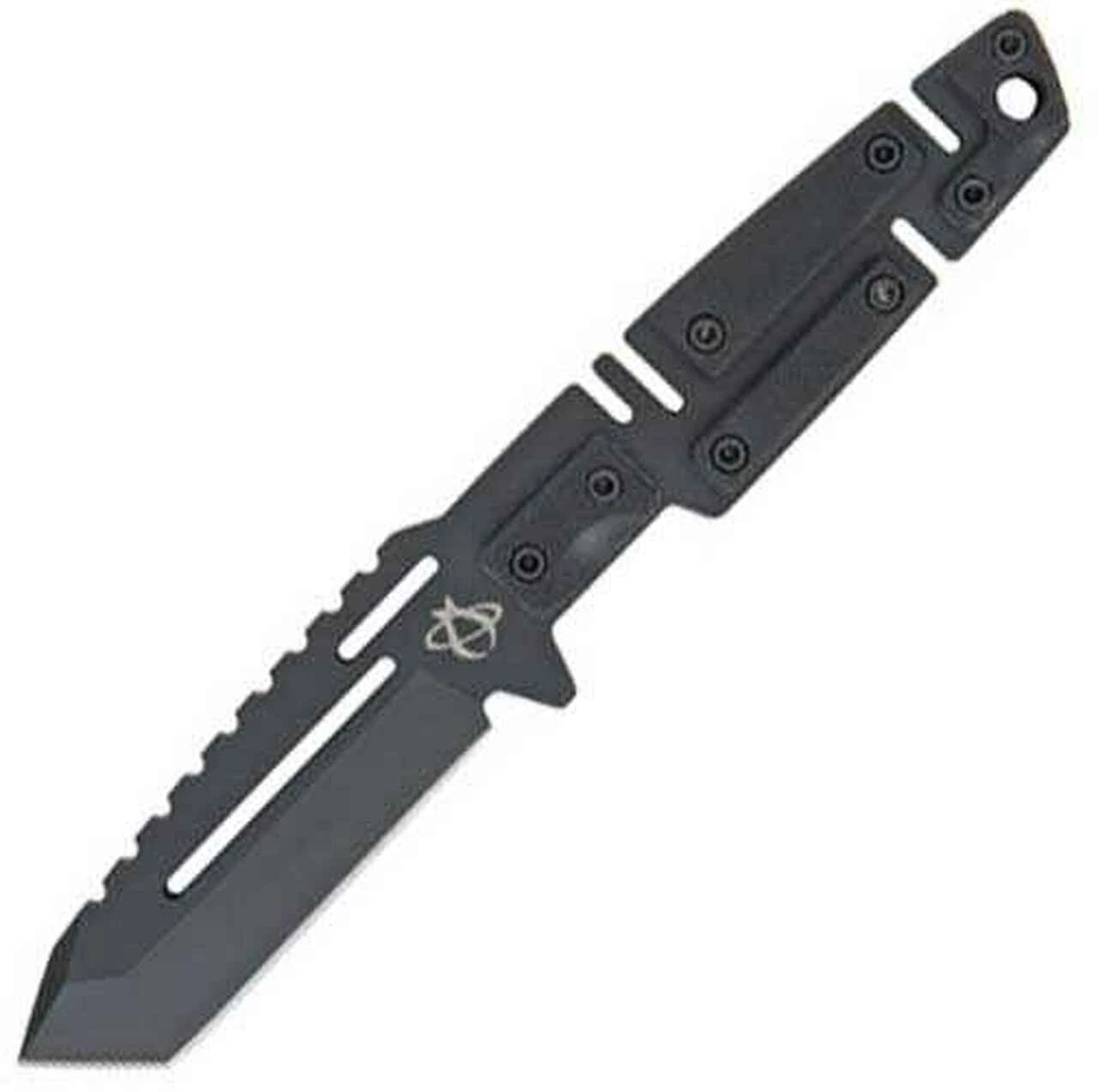 The MF-4 series of knives is probably the design that is responsible for bringing Mantis to where we are today in the industry. Its angular and very industrial appearance confuses the eye. Our MF-4s are laser cut from a single piece of stainless, and finally 8 individual blocks of G-10 are screwed into the tang with 440-A stainless screws. This knife is without a doubt, a true tactical tool. This is the Chaos I, the steel is a standard 420HC, but the look is anything but standard.