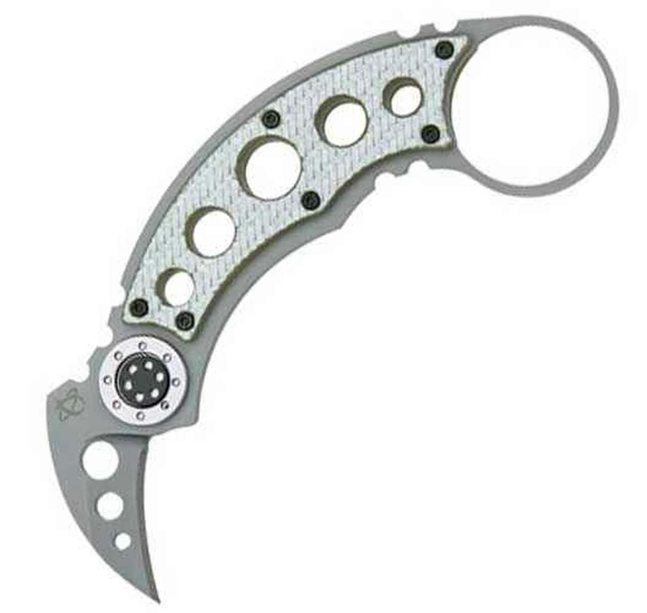 Mantis MK-F Mrs. Smith Fixed Karambit 1 1/4″ Shawty Blade, Silver Twill G10 Handle