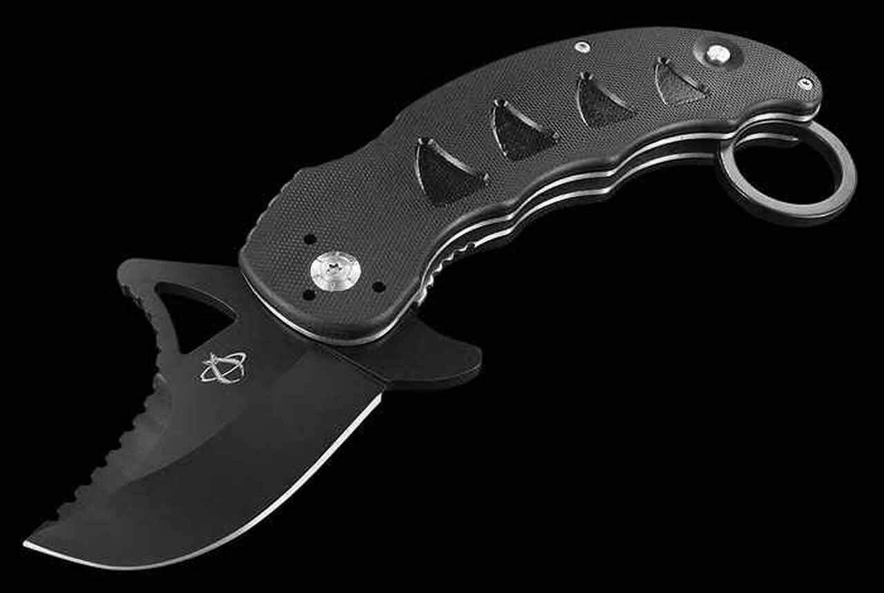 We use our M-vx steel on the blade of this knife, and we have a unique shark tooth design carved into the handle of the G-10. The finger hole has a push button release that we have patented and you will find this feature on more knives to come from Mantis.