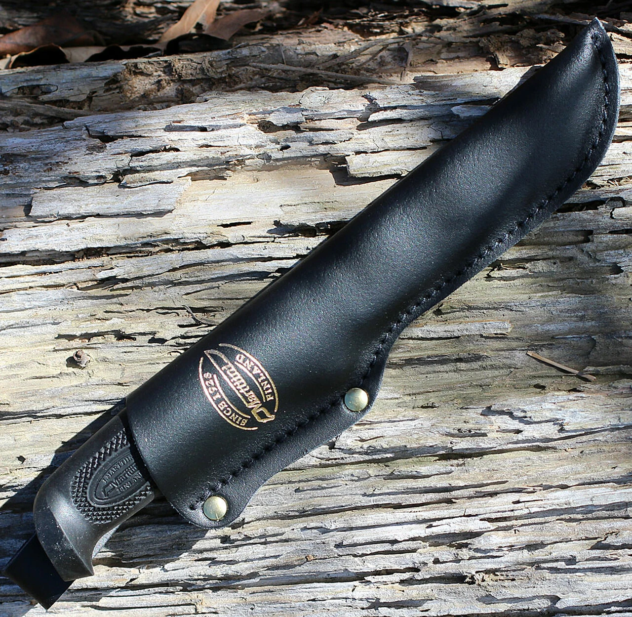 Designed for skinning game, the narrow tip with a wide curved belly allows a running sweep for quick and accurate skinning. Spine side cutting edge allows precise work in tight corners.