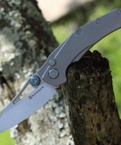 Maxace Knives Babylon 3.74″ Satin Plain Blade, Gray Titanium Handle – MBB01