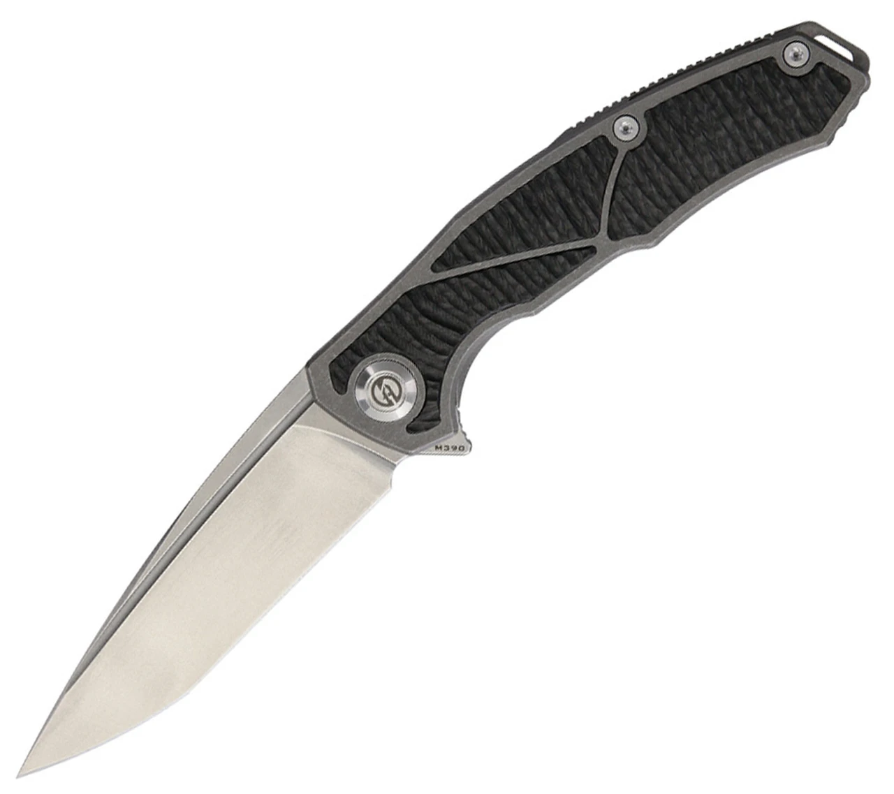 Maxace Halictus boasts Bohler M390 blade steel, effortless deployment, and an ergonomic titanium handle. Its modified tanto blade tackles heavy-duty cutting tasks and precision work with ease. The handle features sculpted carbon fiber inlays for added grip and aesthetic appeal.3