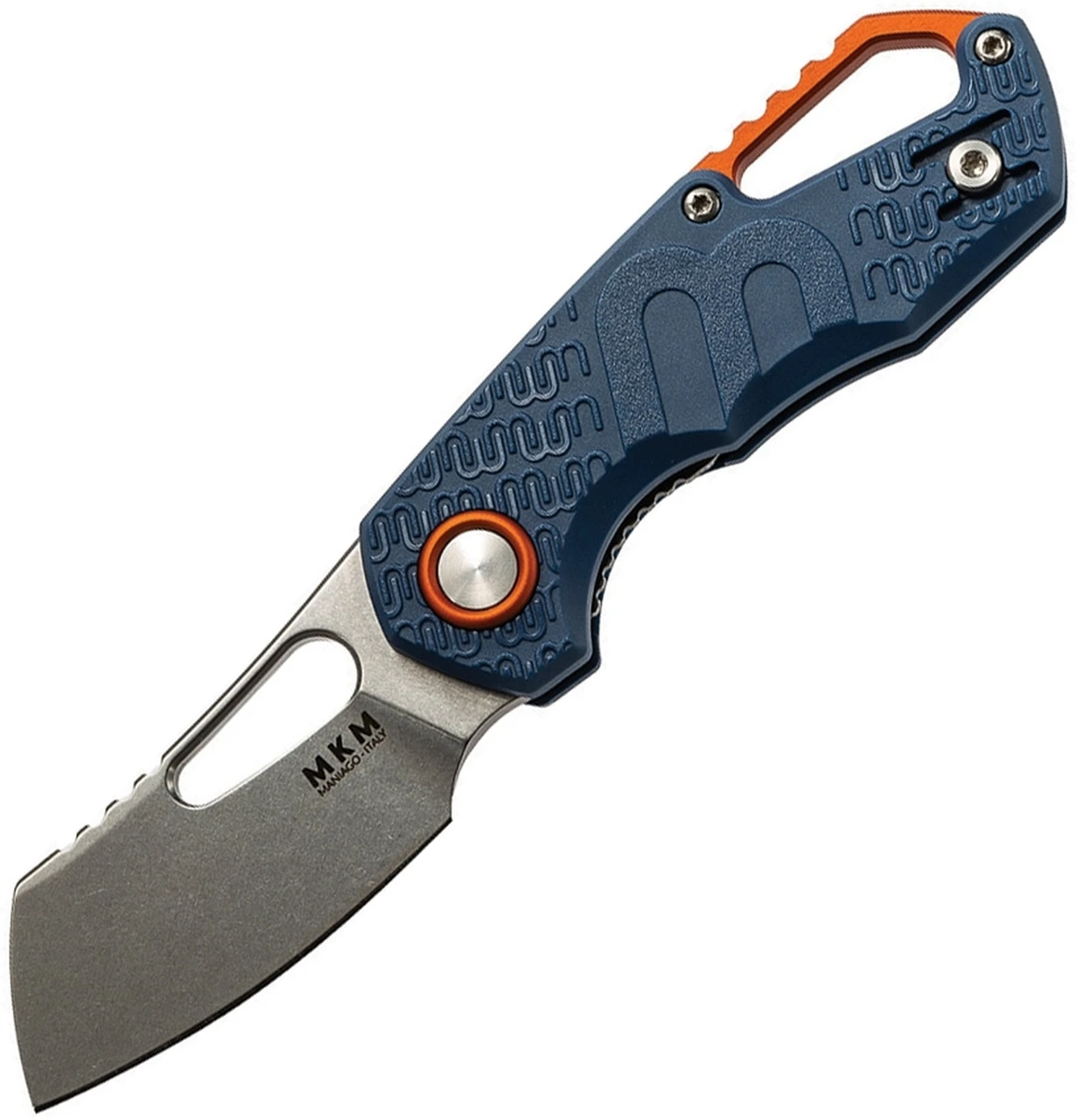 MKM – Maniago Knife Makers Isonzo Stonewashed Cleaver Blade, Blue FRN Handle, Orange Aluminium Spacer