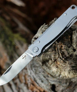MKM – Maniago Knife Makers Isonzo Stonewashed Cleaver Blade, Blue FRN Handle, Red Aluminium Spacer