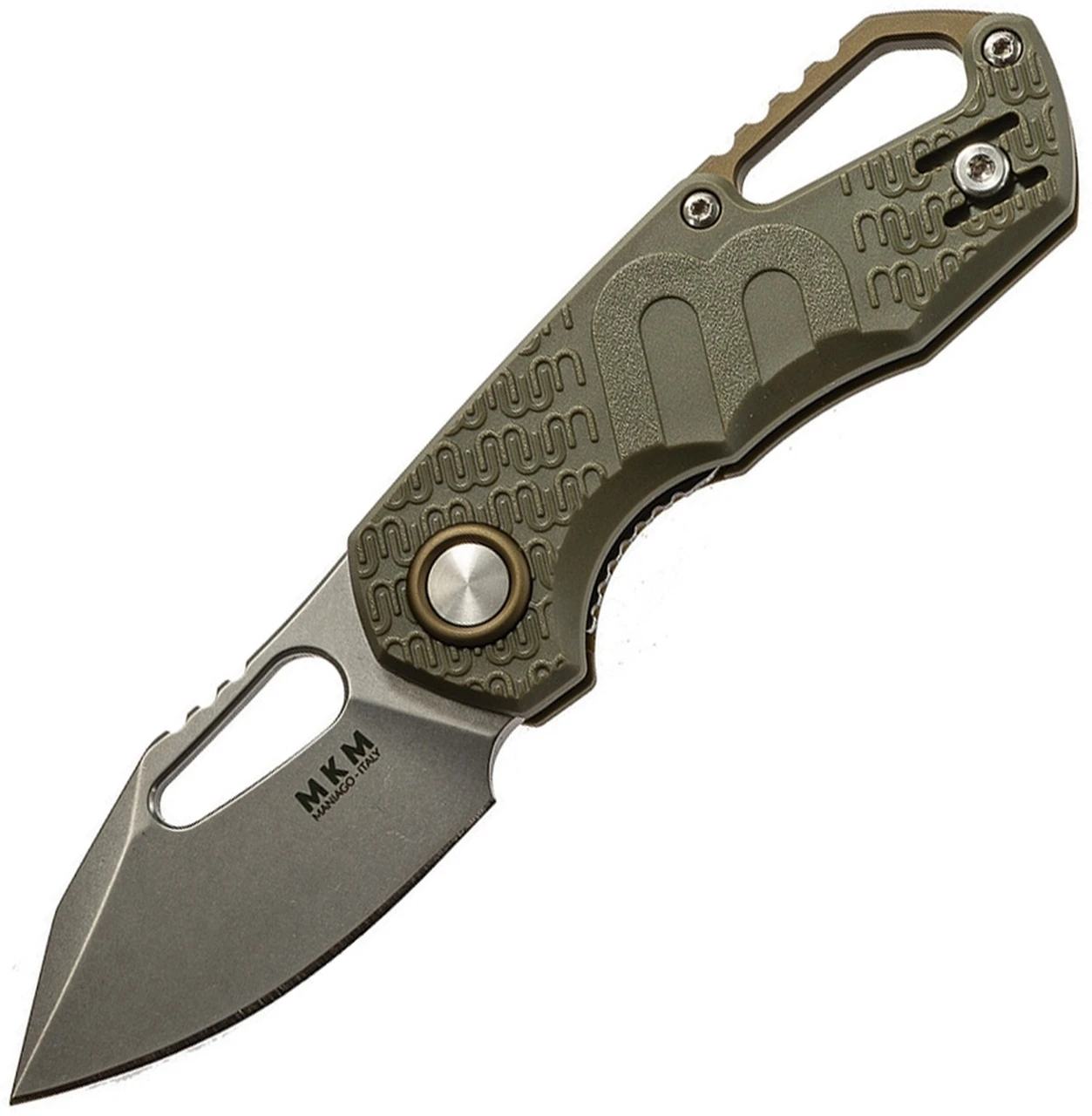 MKM – Maniago Knife Makers Isonzo Stonewashed Clip Point Blade, Green FRN Handle, Green Aluminium Spacer