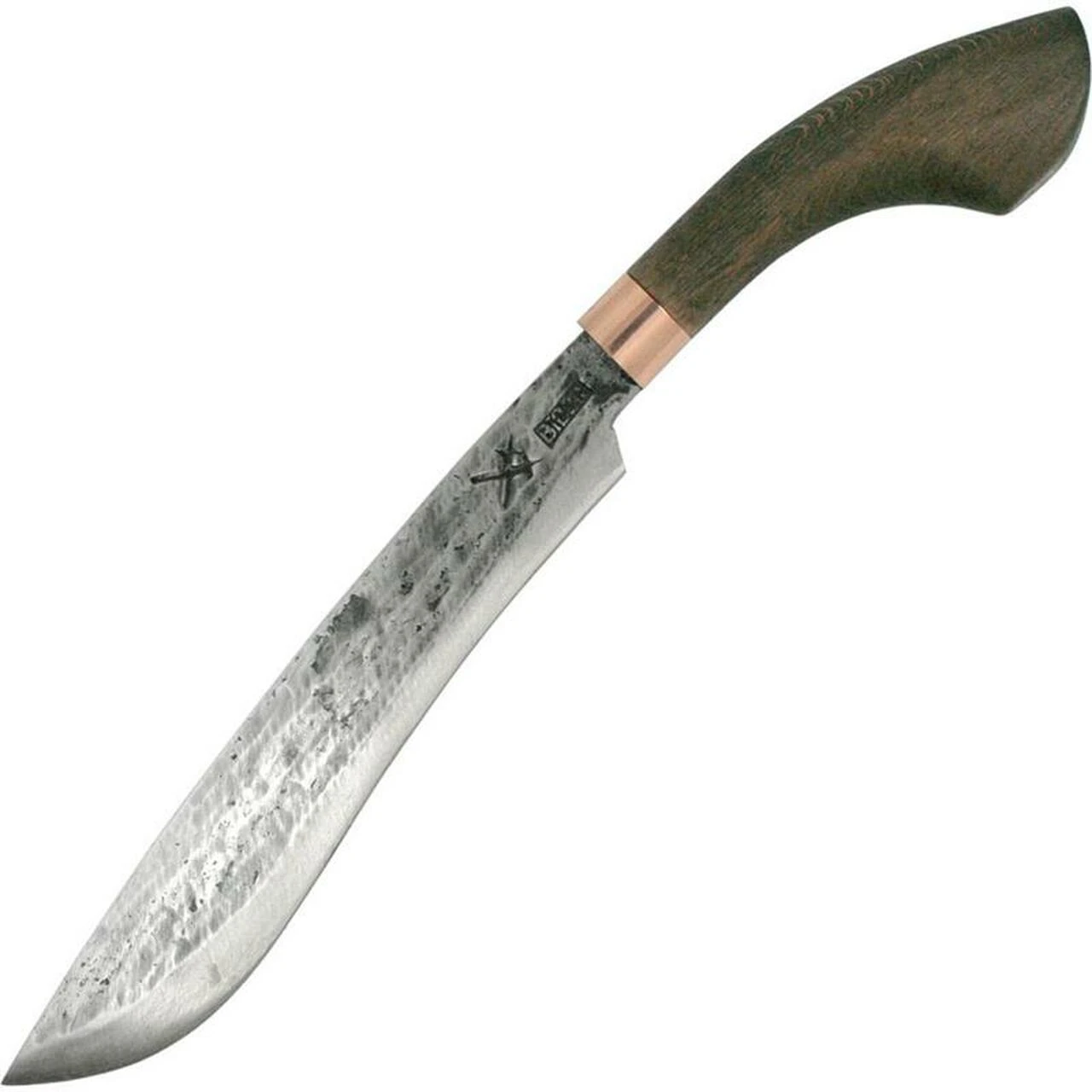 The Golok is a very common design in West Malaysia and is a sizable tool, used for skinning animals, to cutting weeds, to opening coconuts. The blade which is made of 5160 high carbon steel with a tip that is pretty strong and the point makes it easy to dig and pry holes. Each blade is hand forged and each one is unique. The handle is made of Eco wood sourced from Croatia. They are farmed Beech wood and are a renewable resource. The handle is slightly longer to accommodate large hands. The handle design enables various grips comfortably , from choking up to the blade, to holding the handle way back . The various handle position enables different cutting tasks. Reinforcing the tang and handle is a brass pin and industrial strength epoxy along with a polished copper collar. MY Parang’s Golok Machete comes with a heavy-duty nylon sheath with Molle webbing.