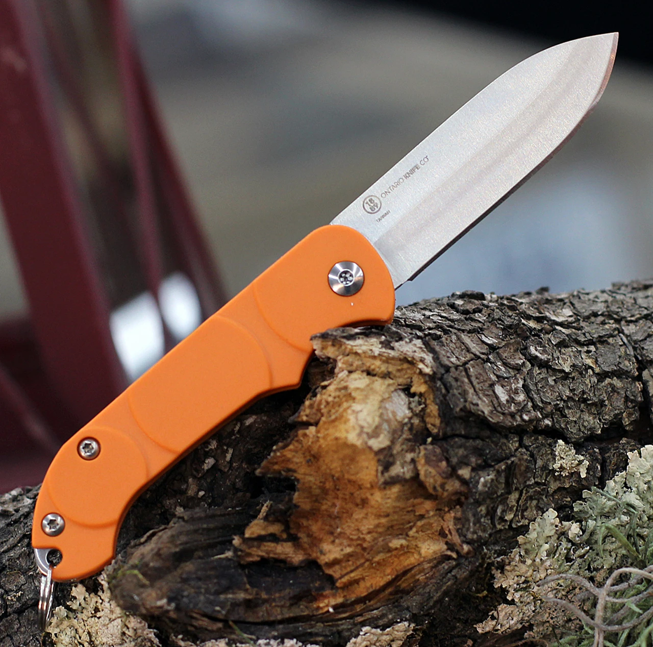 Ontario Knife Co. Traveler 8901, 2.25″ Stainless Steel Satin Plain Blade, Orange Plastic Handle
