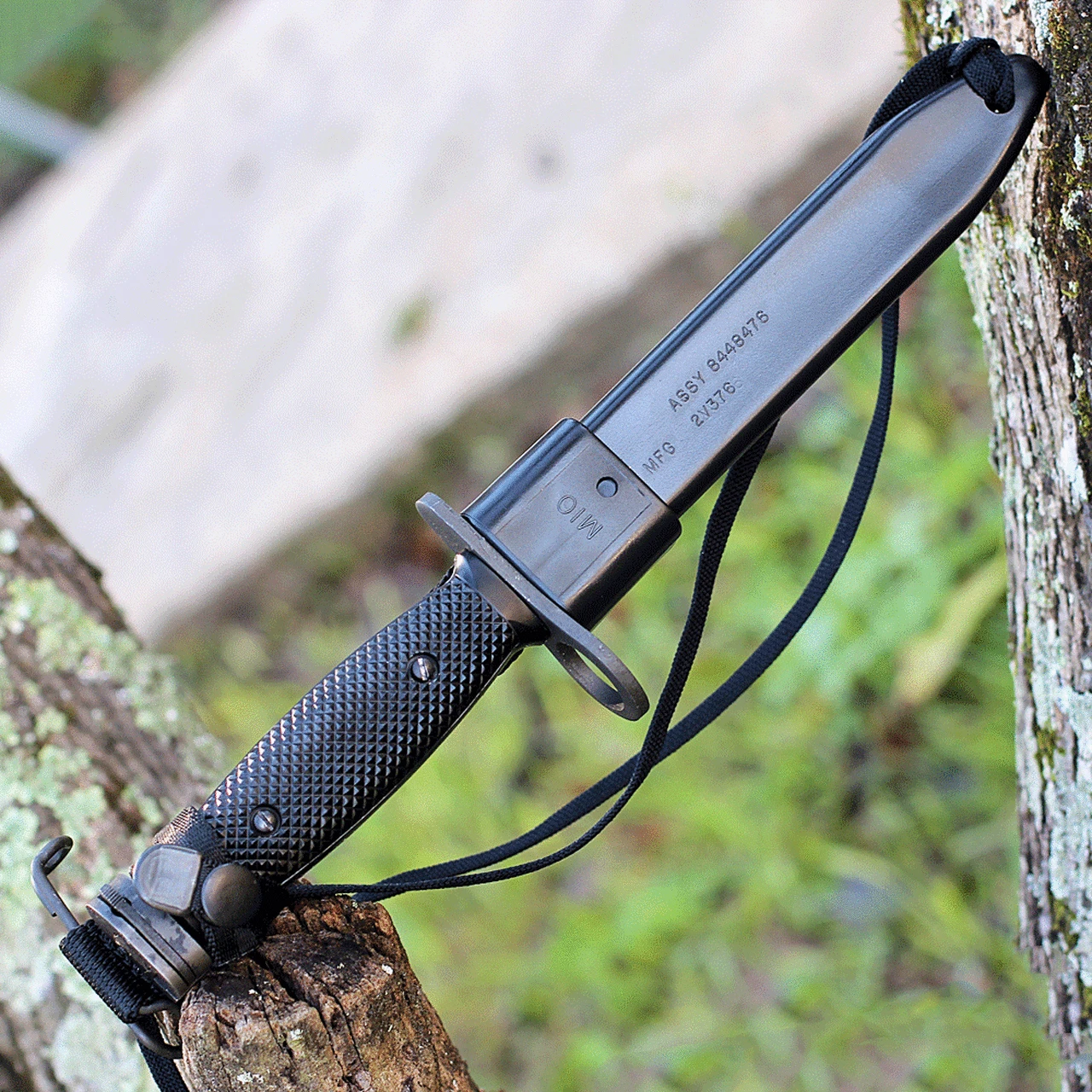 Used by the Military from 1965, this Ontario M-7 Bayonet is a valuable collector’s item. The Entire Knife measures 11-5/8″ with a 6.7″ Black Blade and Black Polypropylene Handle attached to it that has been mounted into a Scabbard.