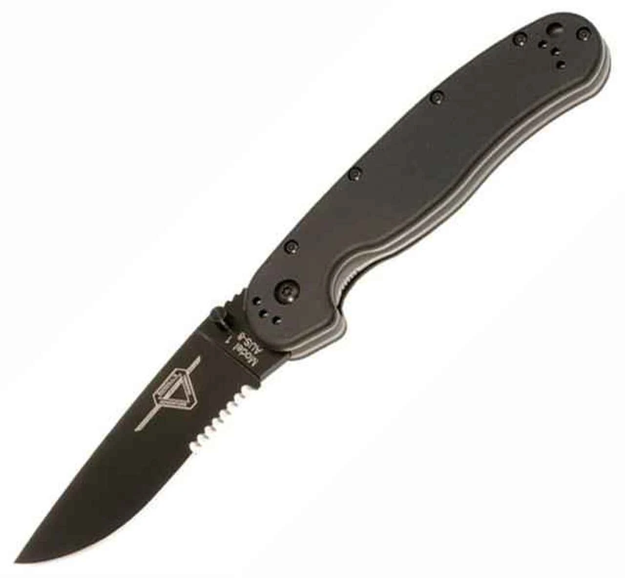 The Model 1 features a 4-way clip position, heavy-duty open post construction, razor-sharp AUS-8 blade, full flat grind, reversible thumb stud, precision pivot screw, lanyard hole, and ergonomic handles.
